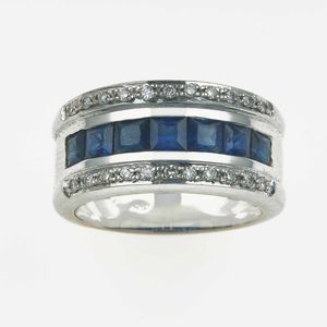 Anello a fascia con rubini, smeraldi, diamanti e zaffiri