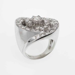 Anello contrarié con due diamanti di vecchio taglio per ct 0.90 circa totali