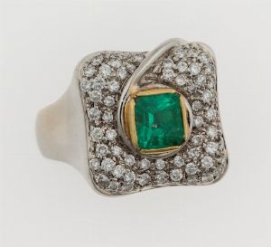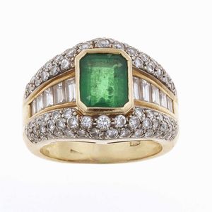 Anello con smeraldo Colombia di ct 1.20 circa e diamanti a contorno per ct 1.00 [..]