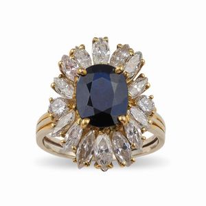 Anello con zaffiro Australia di ct 4.80 circa e diamanti taglio a brillante a contorno [..]