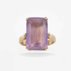 Lotto composto da due anelli con diamanti, corindoni multicolor e spinello sinte [..]