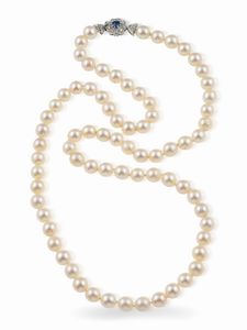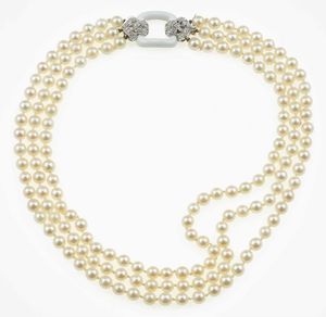 Girocollo con perle coltivate, smeraldo Colombia di ct 3.50 circa e diamanti
