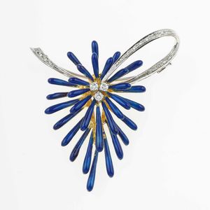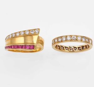 Lotto composto da anello con zaffiro sintetico taglio cabochon e diamanti ed una [..]