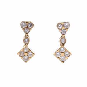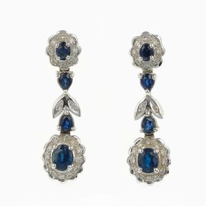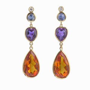 Orecchini pendenti con quarzi citrini, ametiste, zaffiri e diamanti