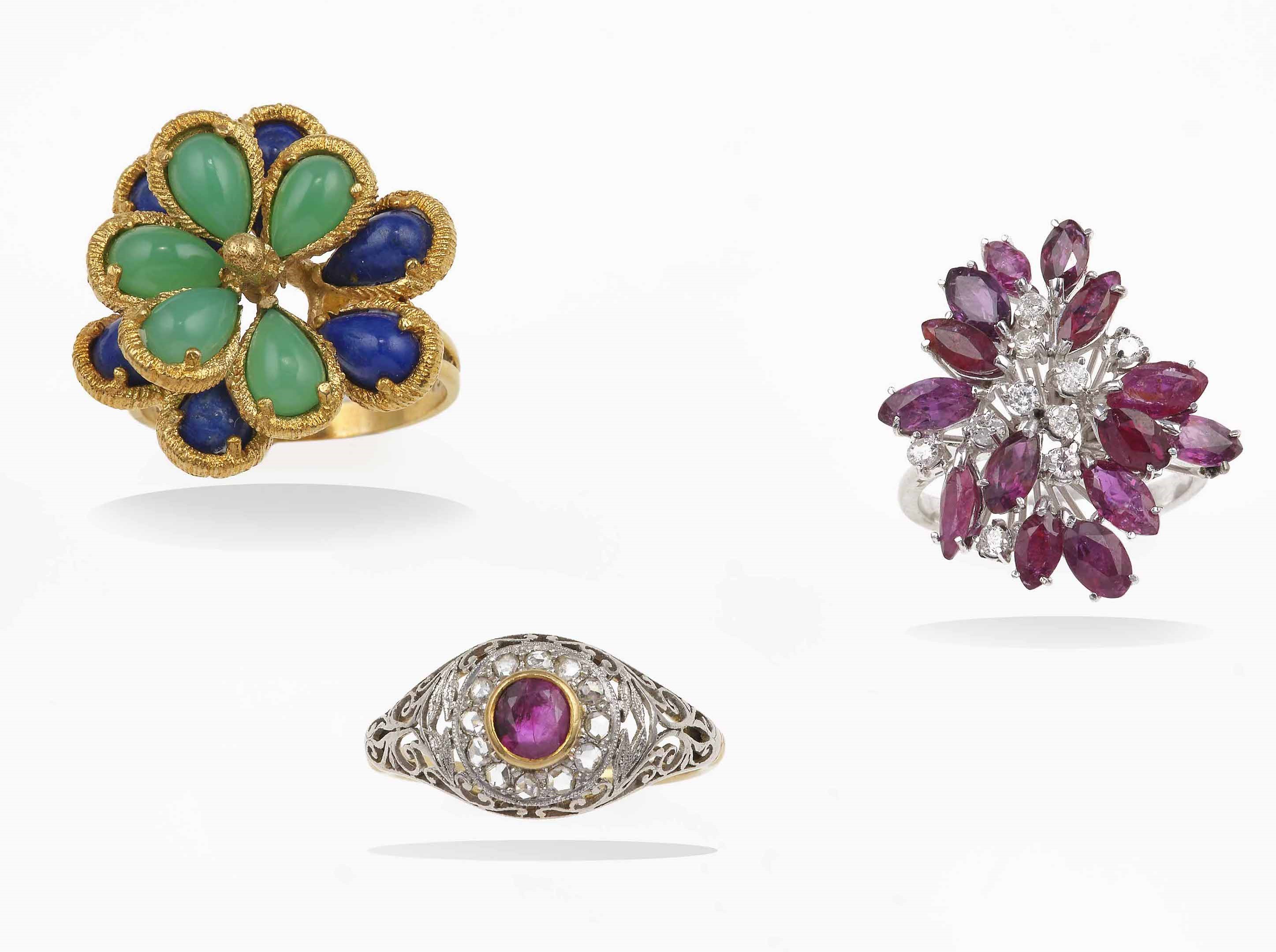 Lotto composto da tre anelli con gemme