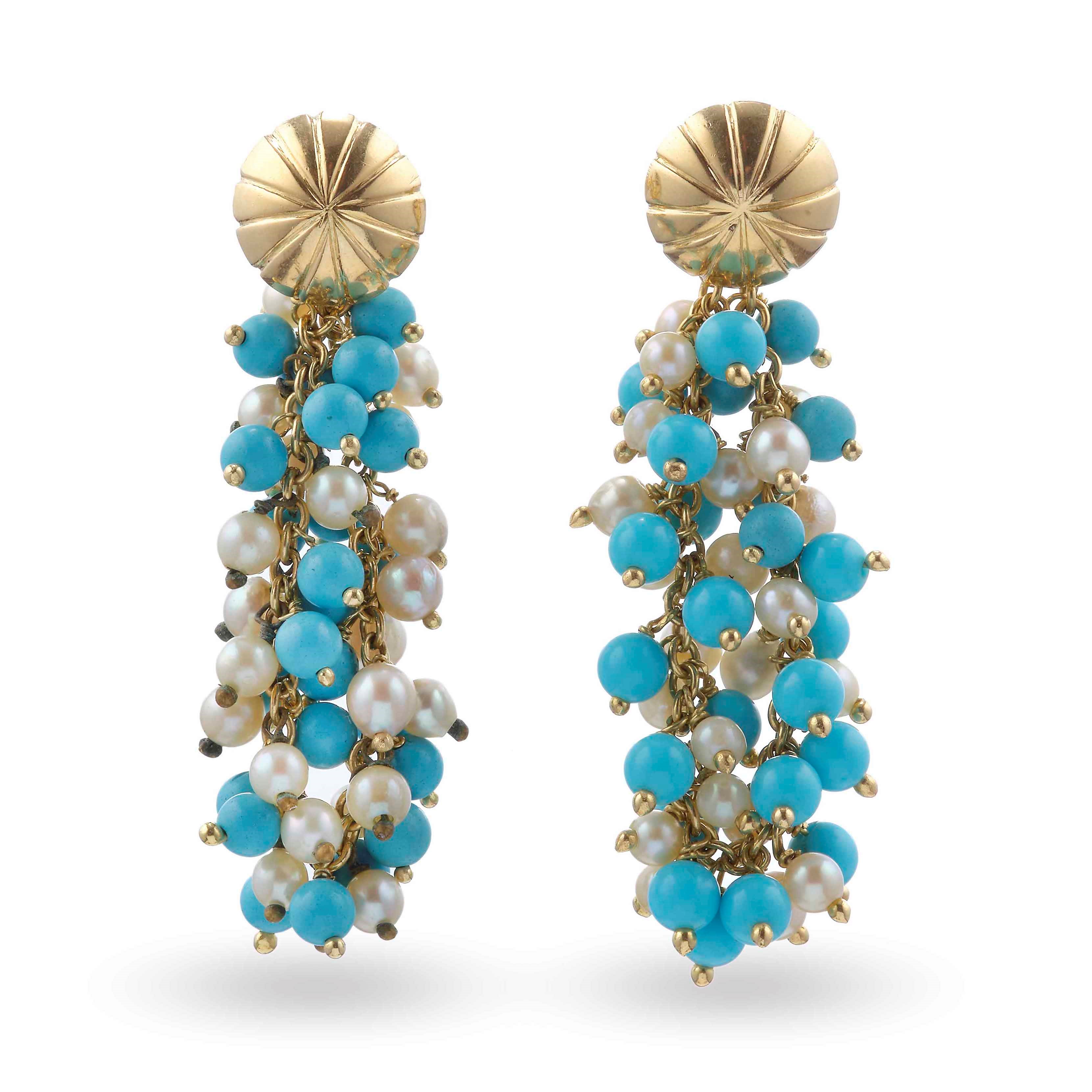 Orecchini pendenti con perle coltivate e pasta di turchese