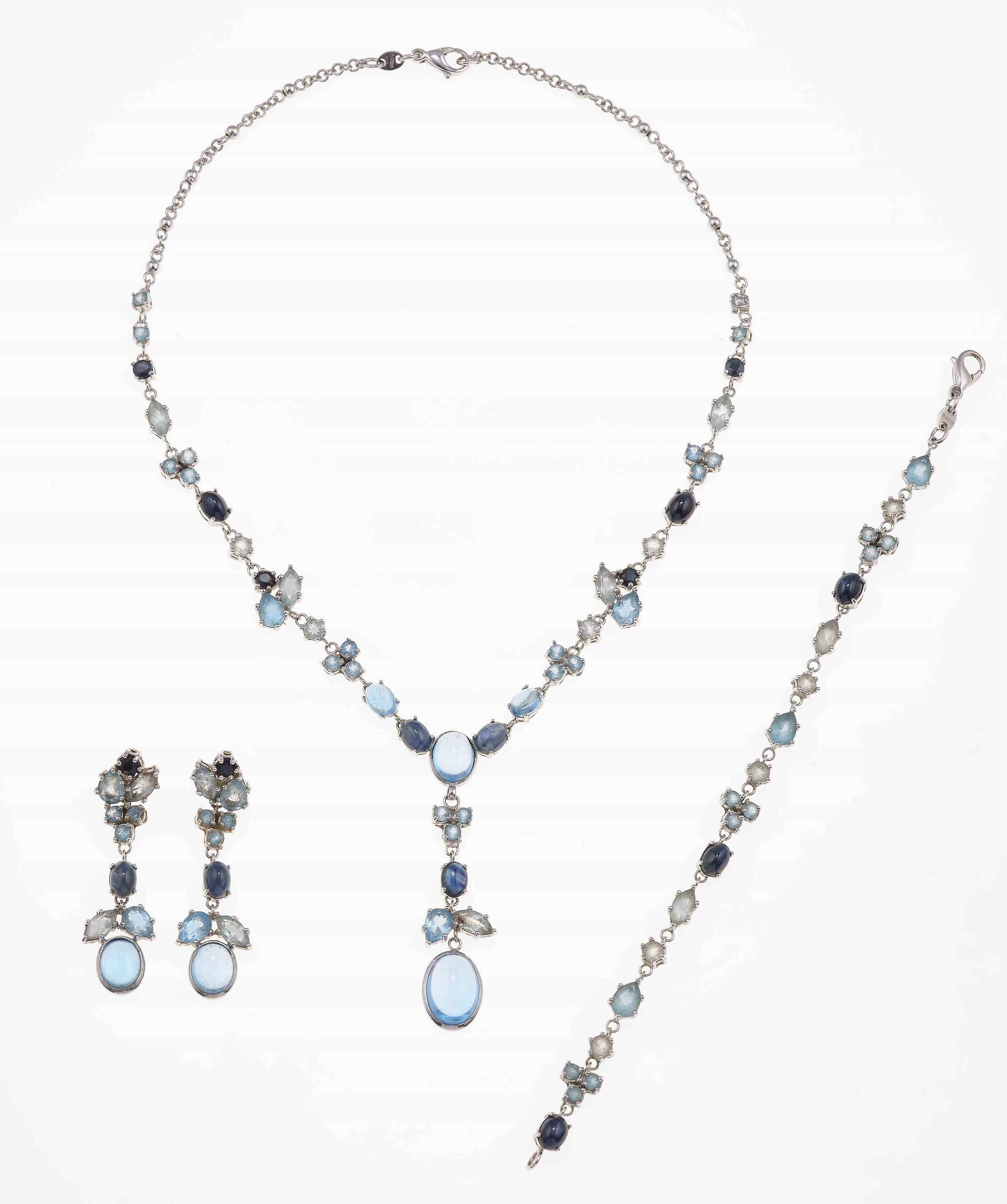 Parure composta da girocollo, bracciale ed orecchini con quarzi azzurri