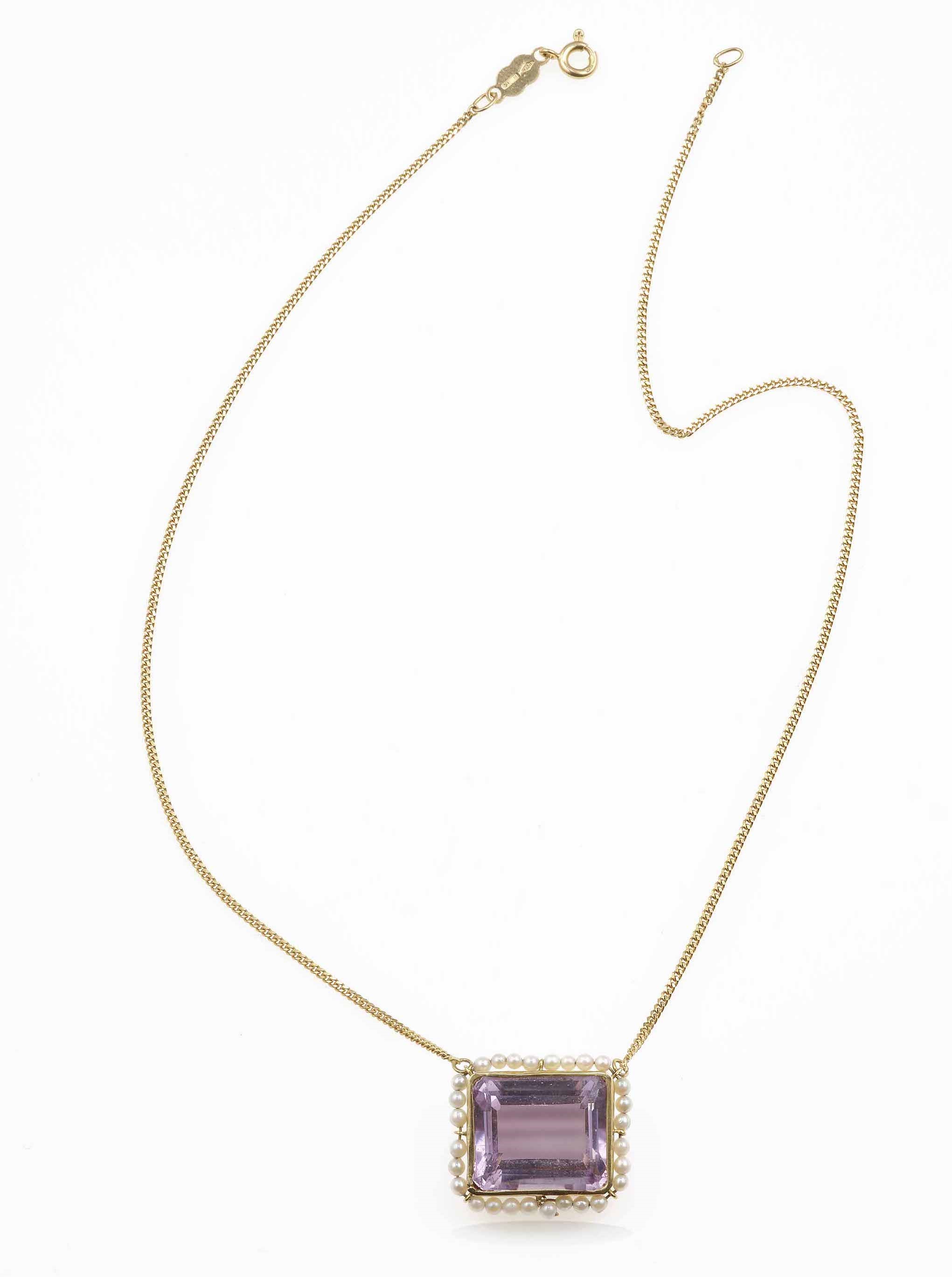 Pendente con ametista e piccole perle