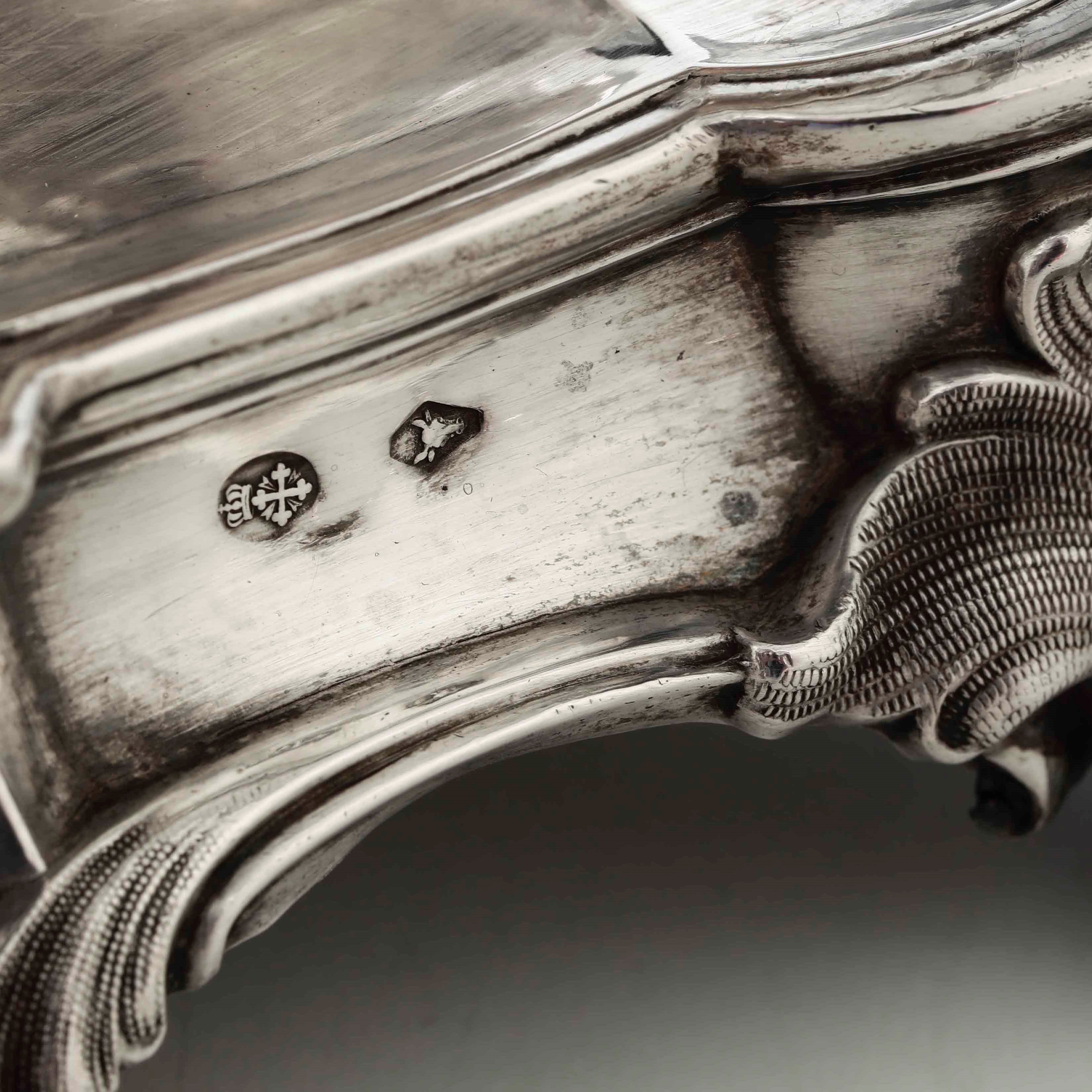 Acetoliera. Argento fuso, sagomato e cesellato. Torino XIX secolo. Marchio con testa [..]