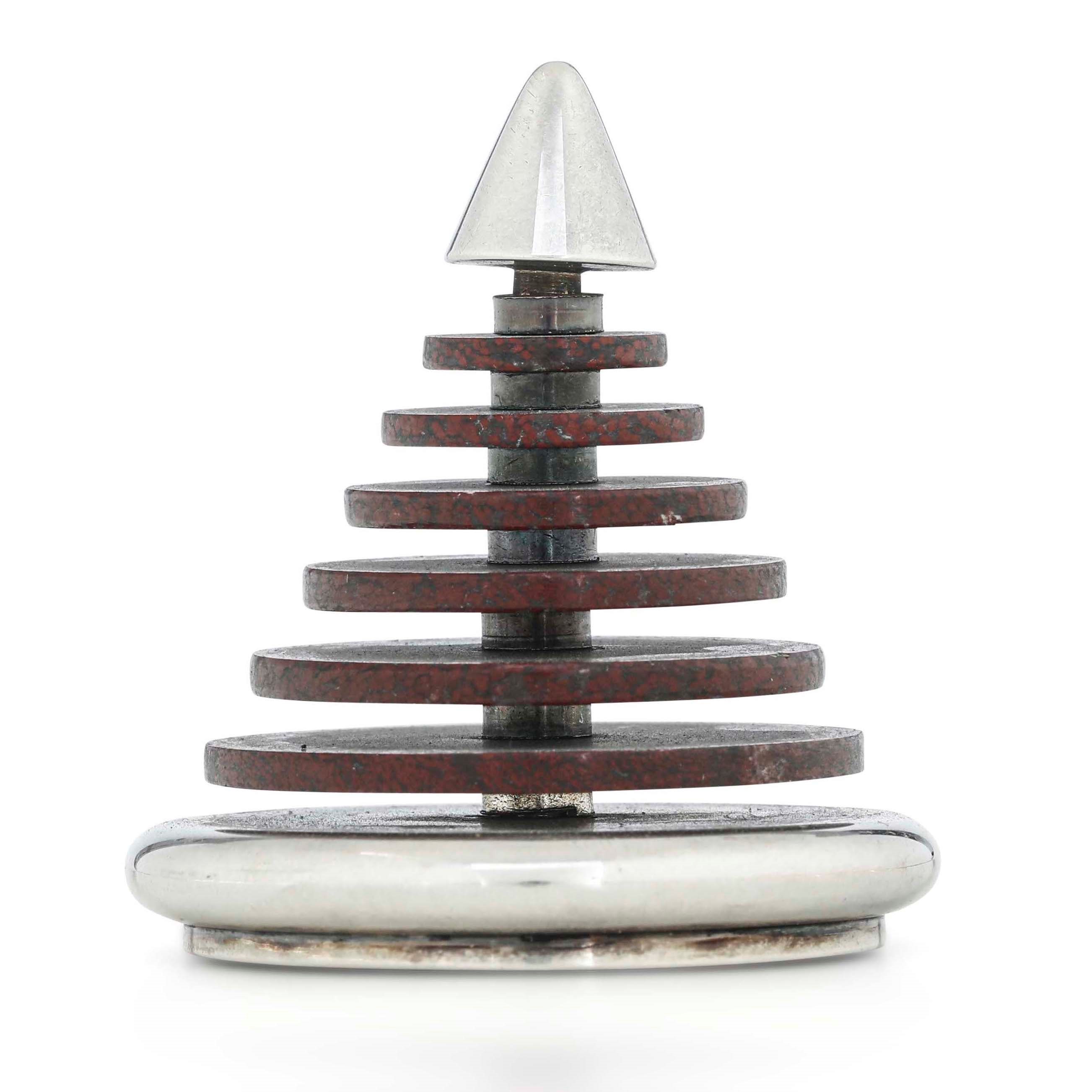 Albero stilizzato. Argento sterling e marmo (granito rosso?). Maison Bulgari, Italia [..]