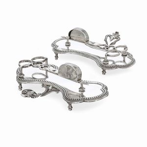 Importante calamaio neoclassico. Argento fuso, sbalzato, traforato, cesellato e [..]