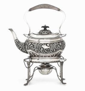 Teiera. Argento fuso, sbalzato e cesellato. Marchio della città di Londra per l'anno [..]