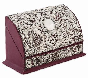 Scatola portadocumenti. Rivestimento in pelle e argento sbalzato e traforato. Probabile [..]