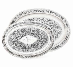 Coppia di piatti da portata. Argento fuso, sbalzato e cesellato. Argenteria coloniale [..]