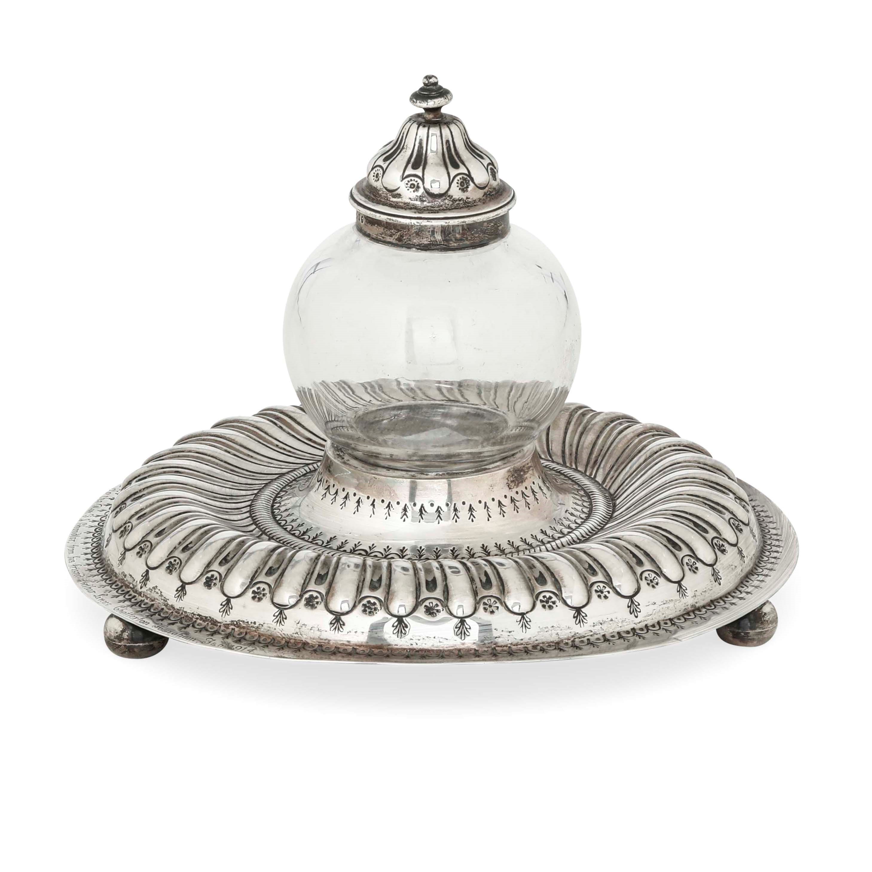 Calamaio. Argento sagomato, cesellato e vetro. Londra 1887. Argentiere JSB (non [..]