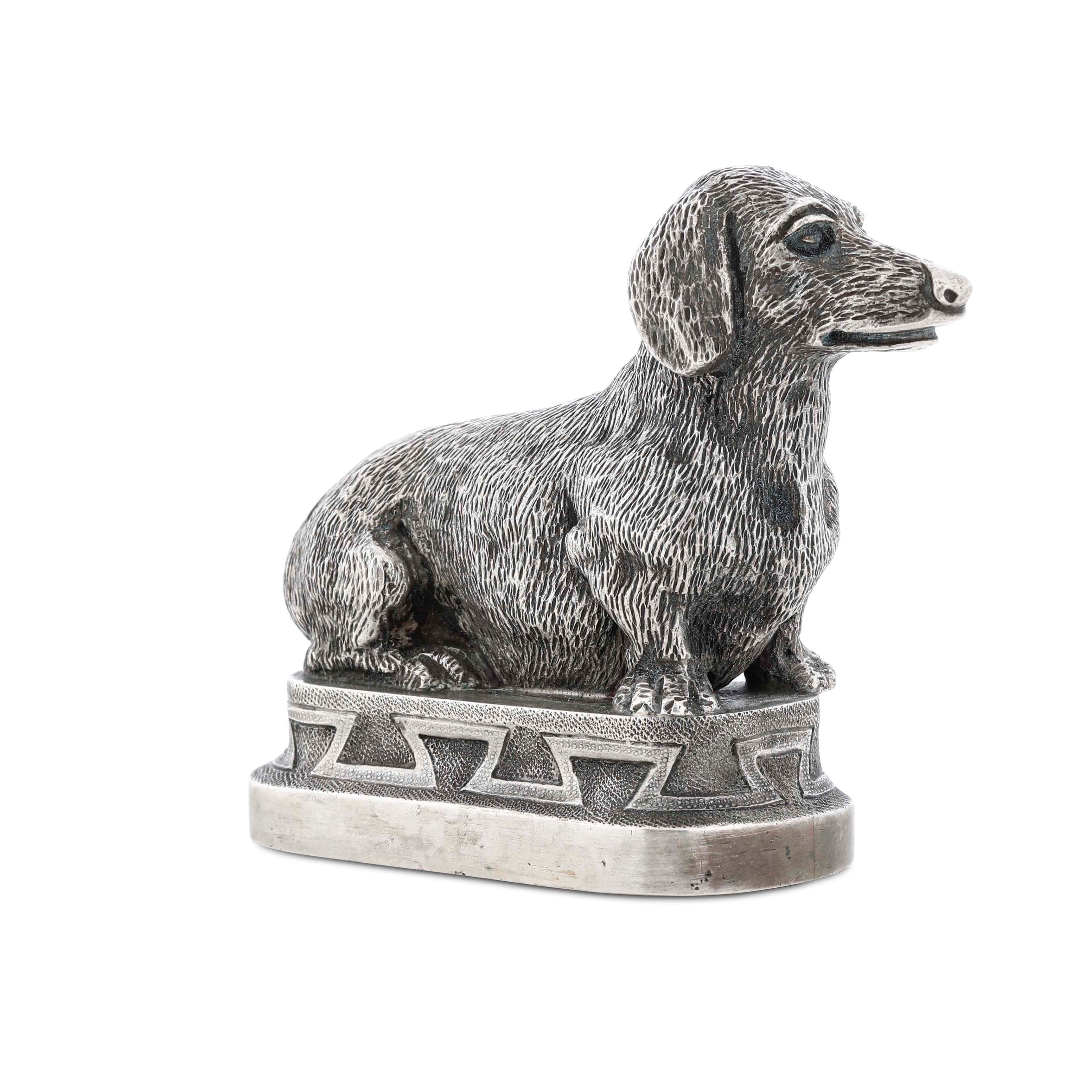 Cane accucciato. Argento fuso e cesellato. Argenteria italiana del XX secolo