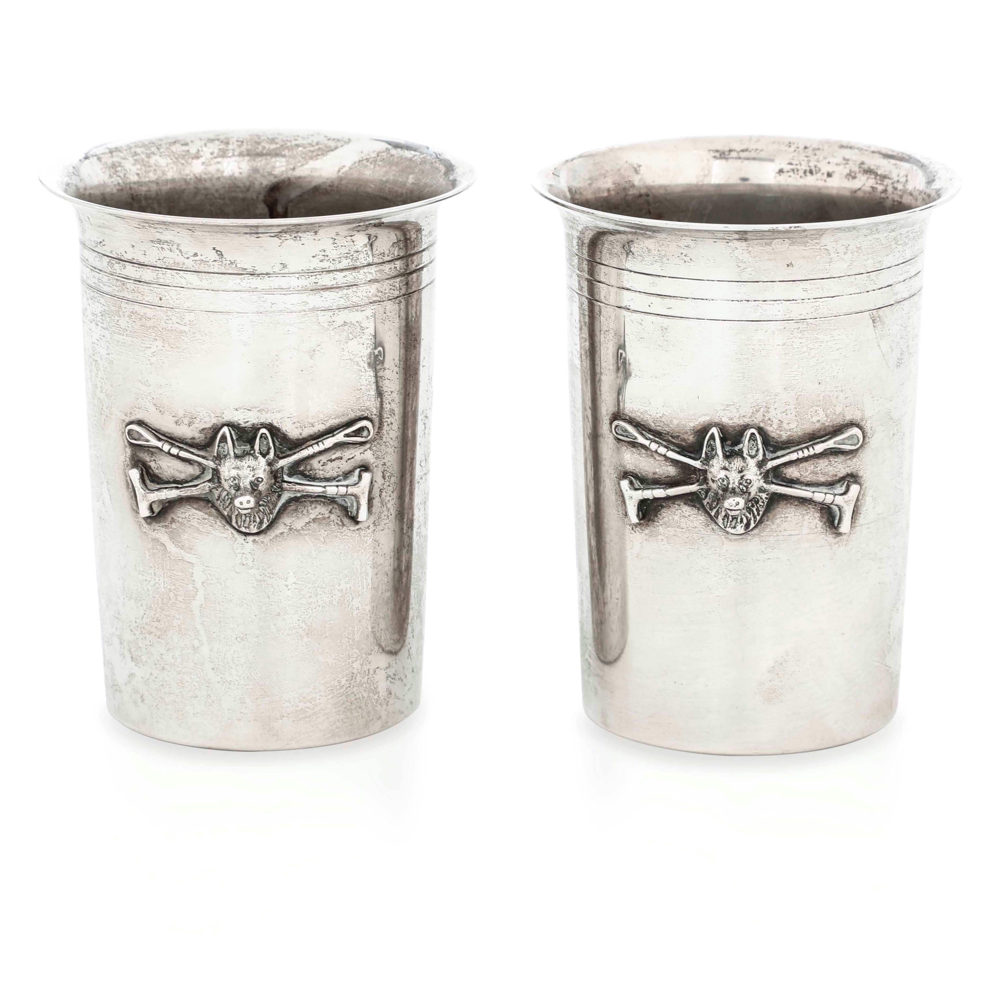 Coppia di bicchieri da caccia. Argento fuso e sagomato. Maison Gucci, Italia XX [..]