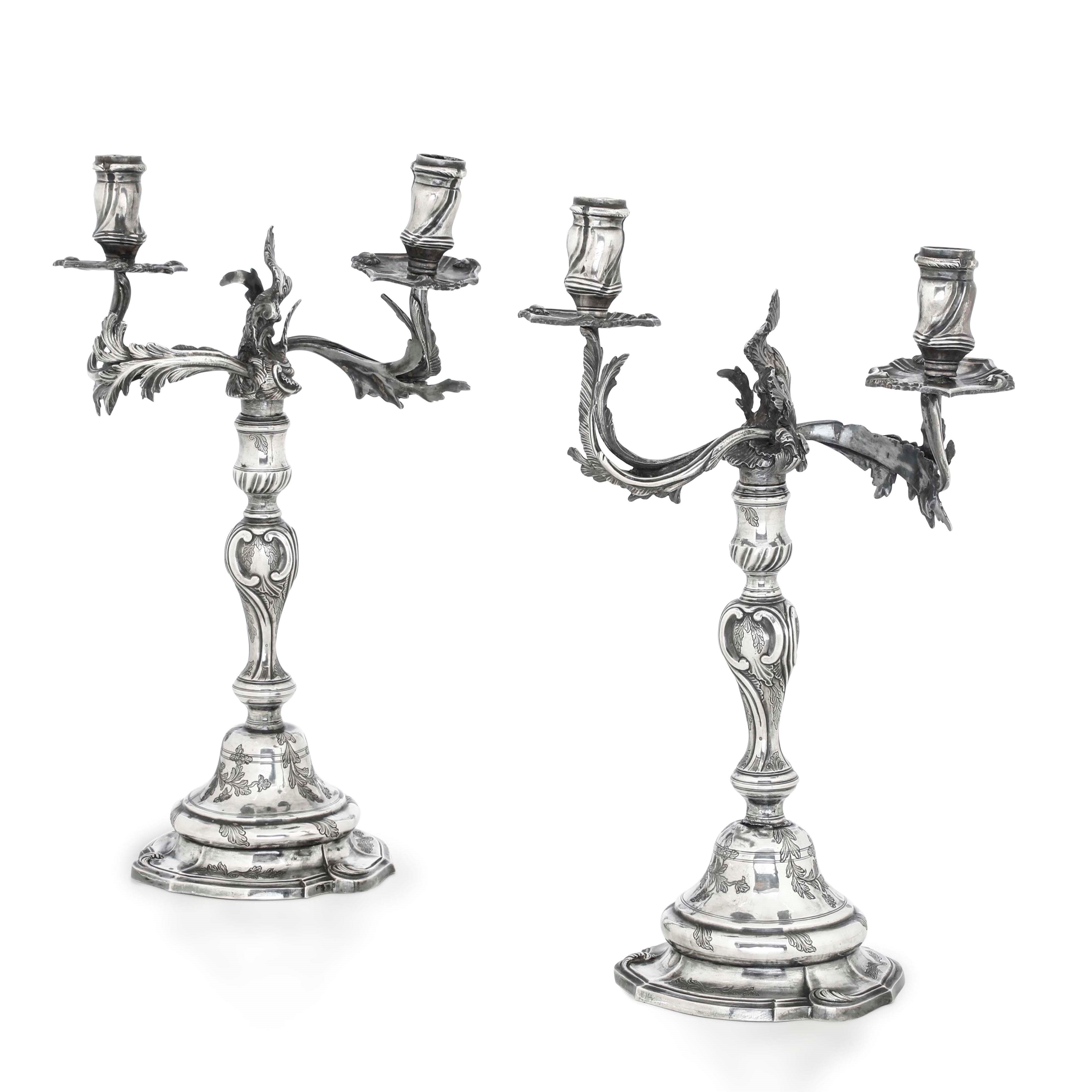 Coppia di doppieri. Argento fuso, sbalzato e cesellato. Genova terzo quarto del [..]