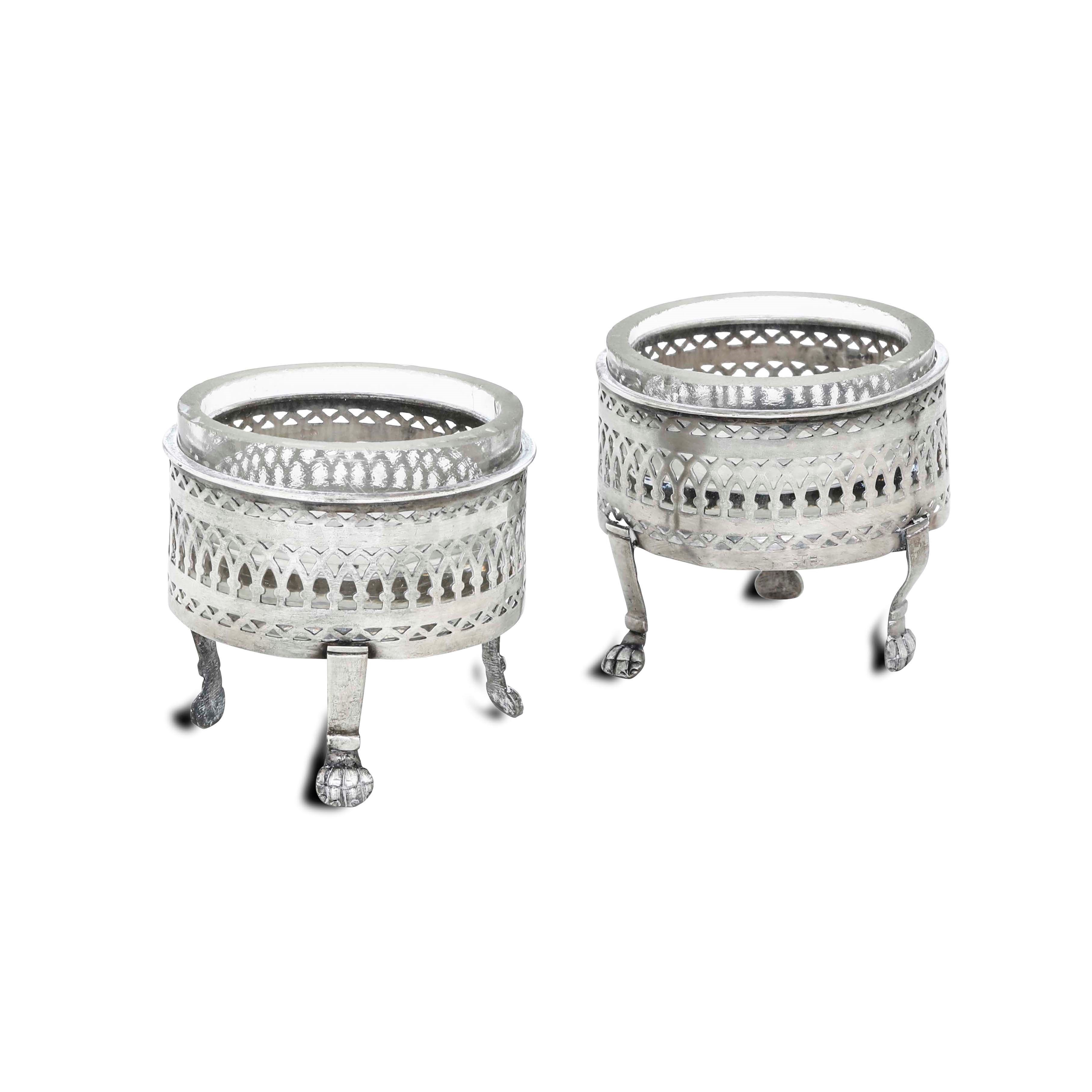Coppia di saliere. Argento fuso, traforato e cesellato. Genova 1818. Marchio della [..]