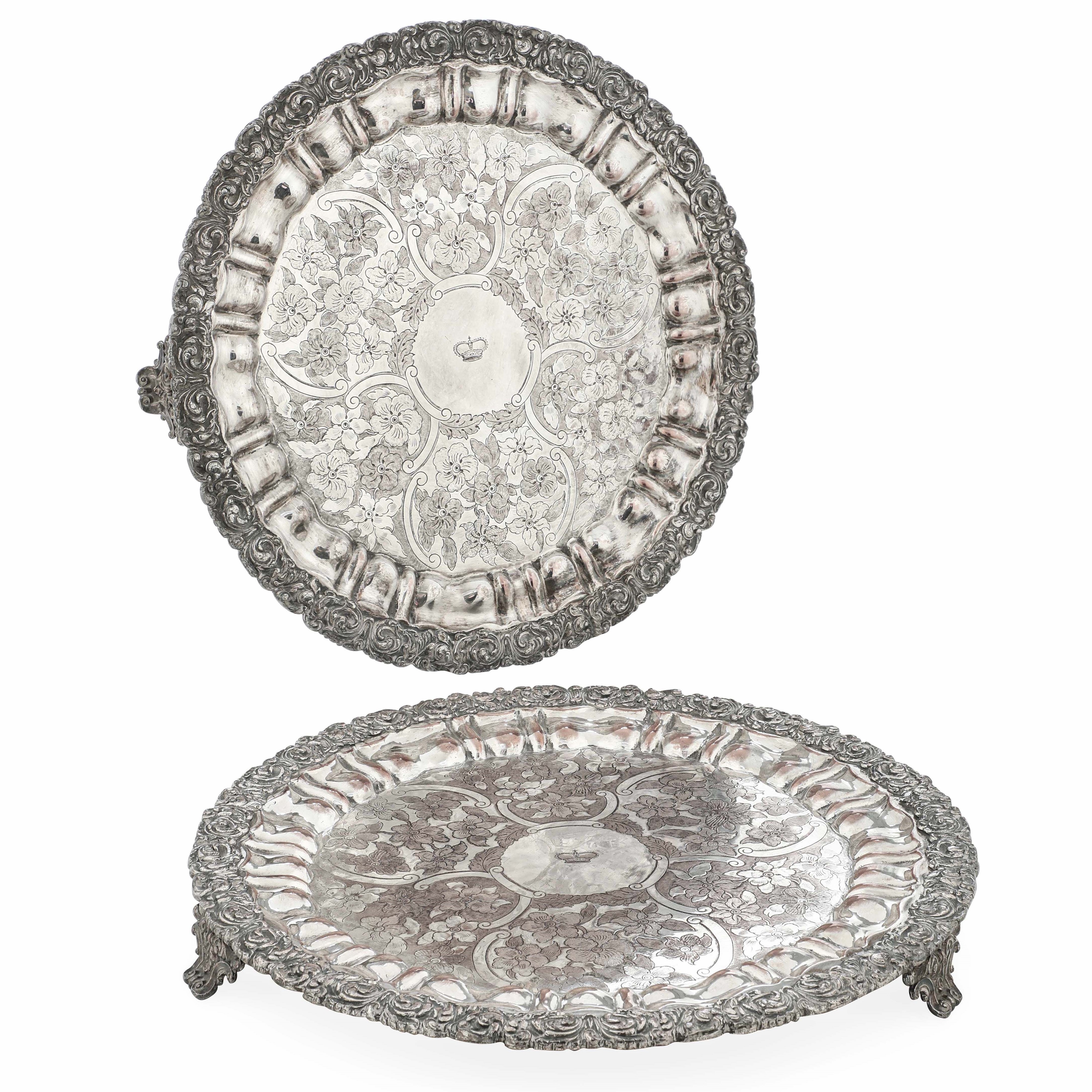 Coppia di salver. Rame fuso, sbalzato, argentato e cesellato. Francia metà XIX s [..]