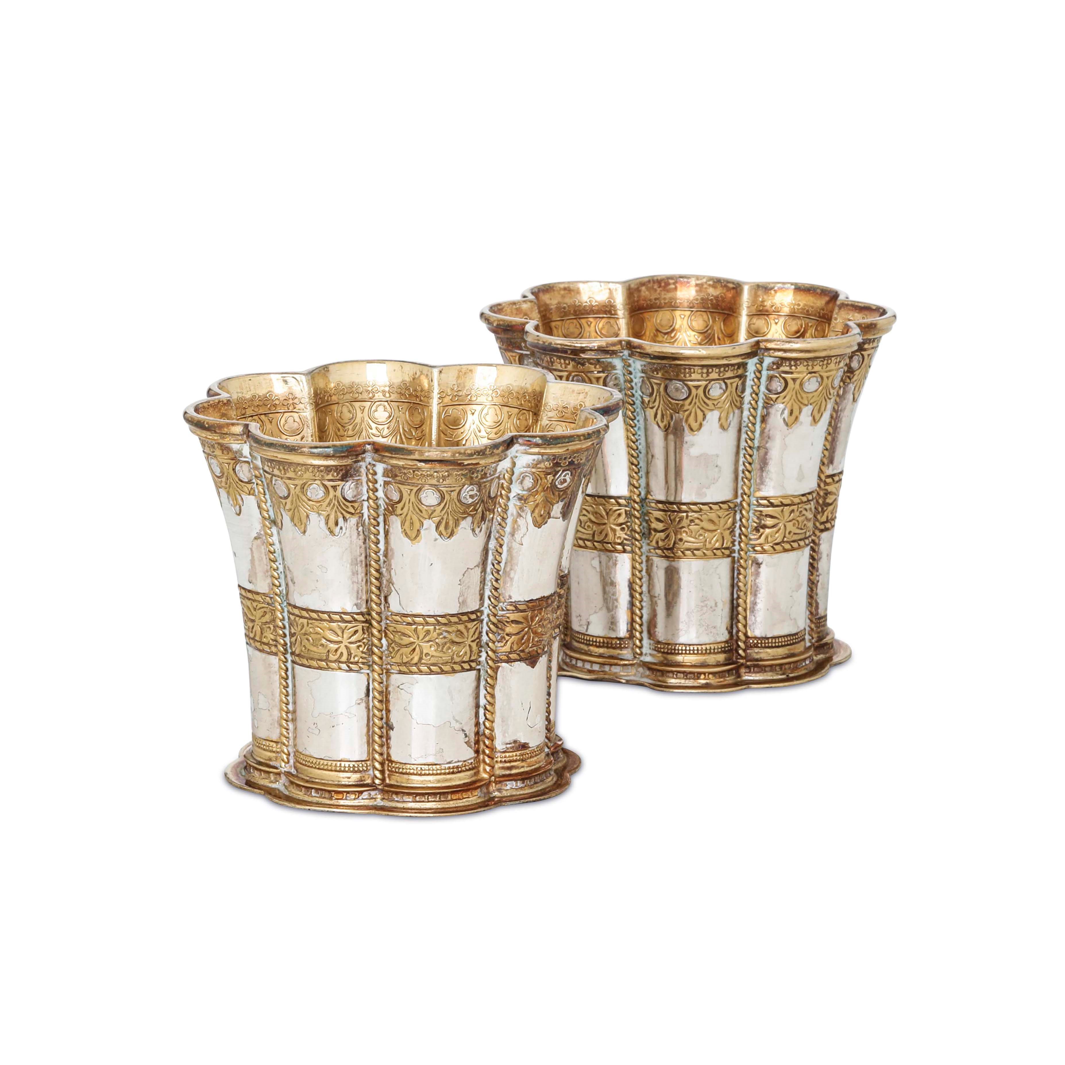 Due bicchieri. Argento 925 fuso, sbalzato, cesellato e dorato. Copenaghen XX secolo, [..]