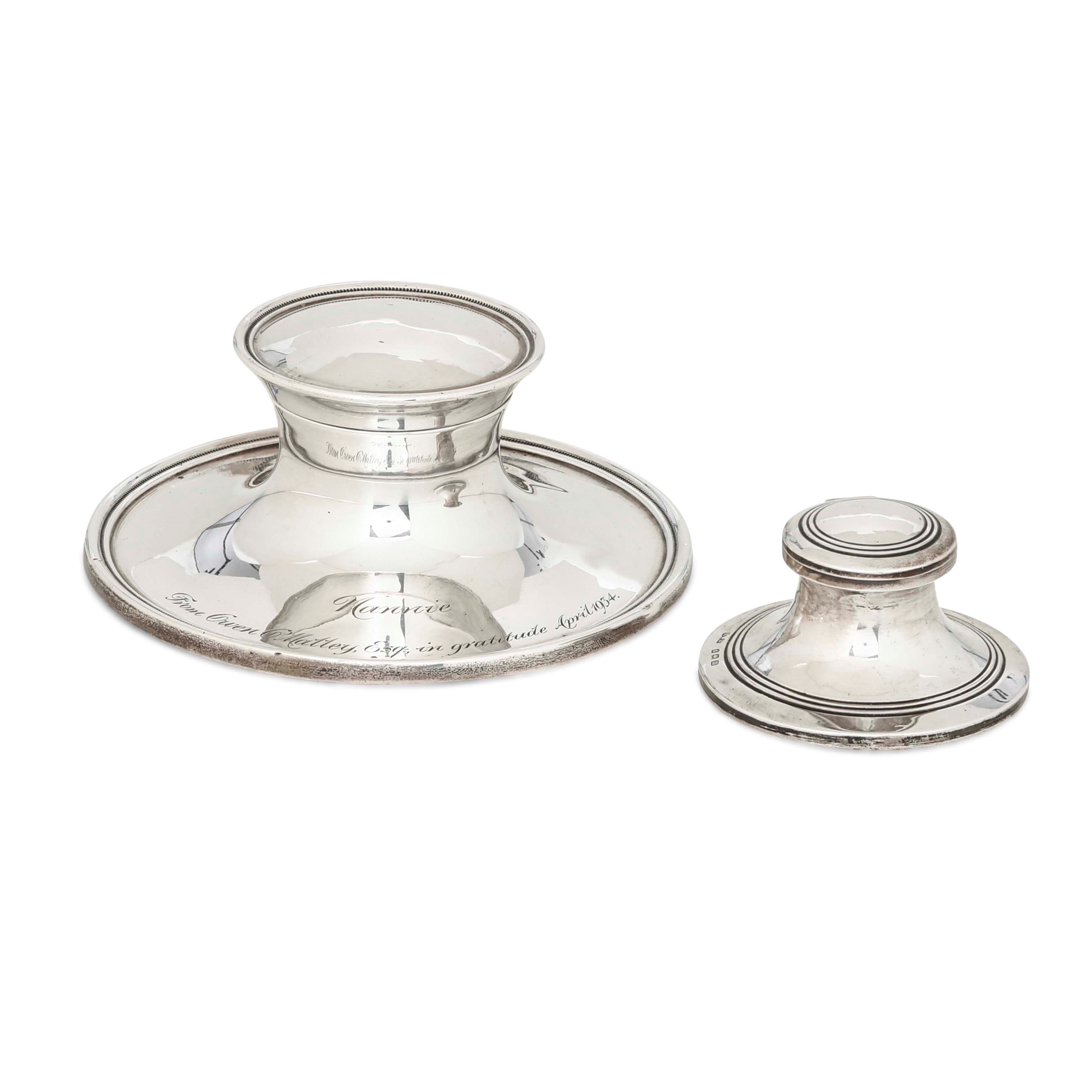 Due calamai. Argento fuso e sagomato. Uno Birmingham 1911, argentiere Henry Williamson [..]