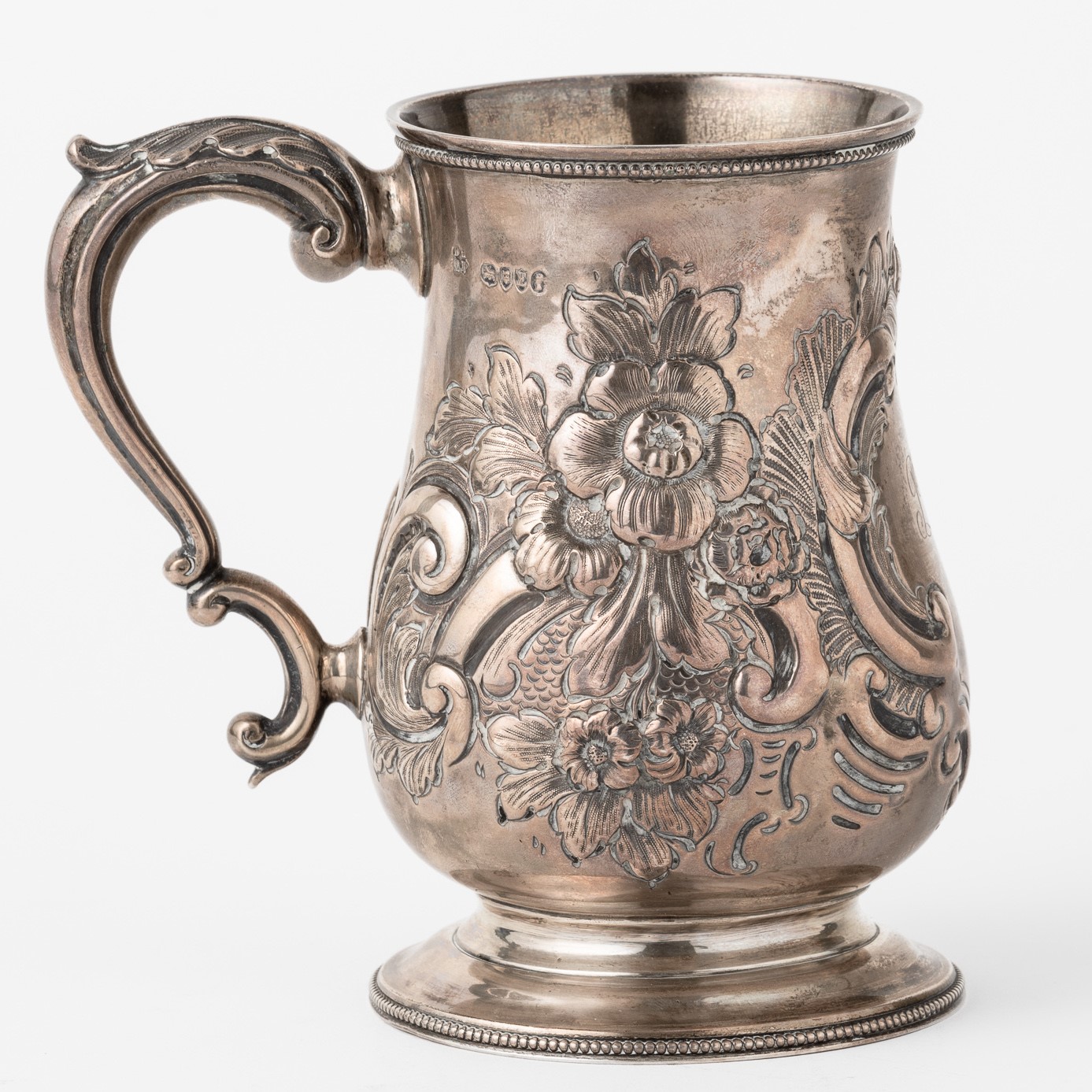 Mug. Argento fuso e sbalzato. Londra 1880, argentiere DHCH (?) non identificato