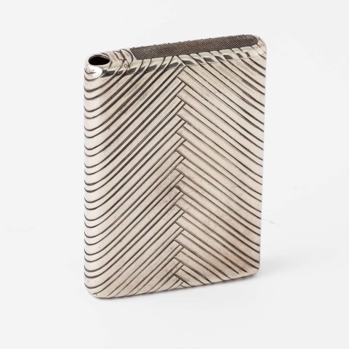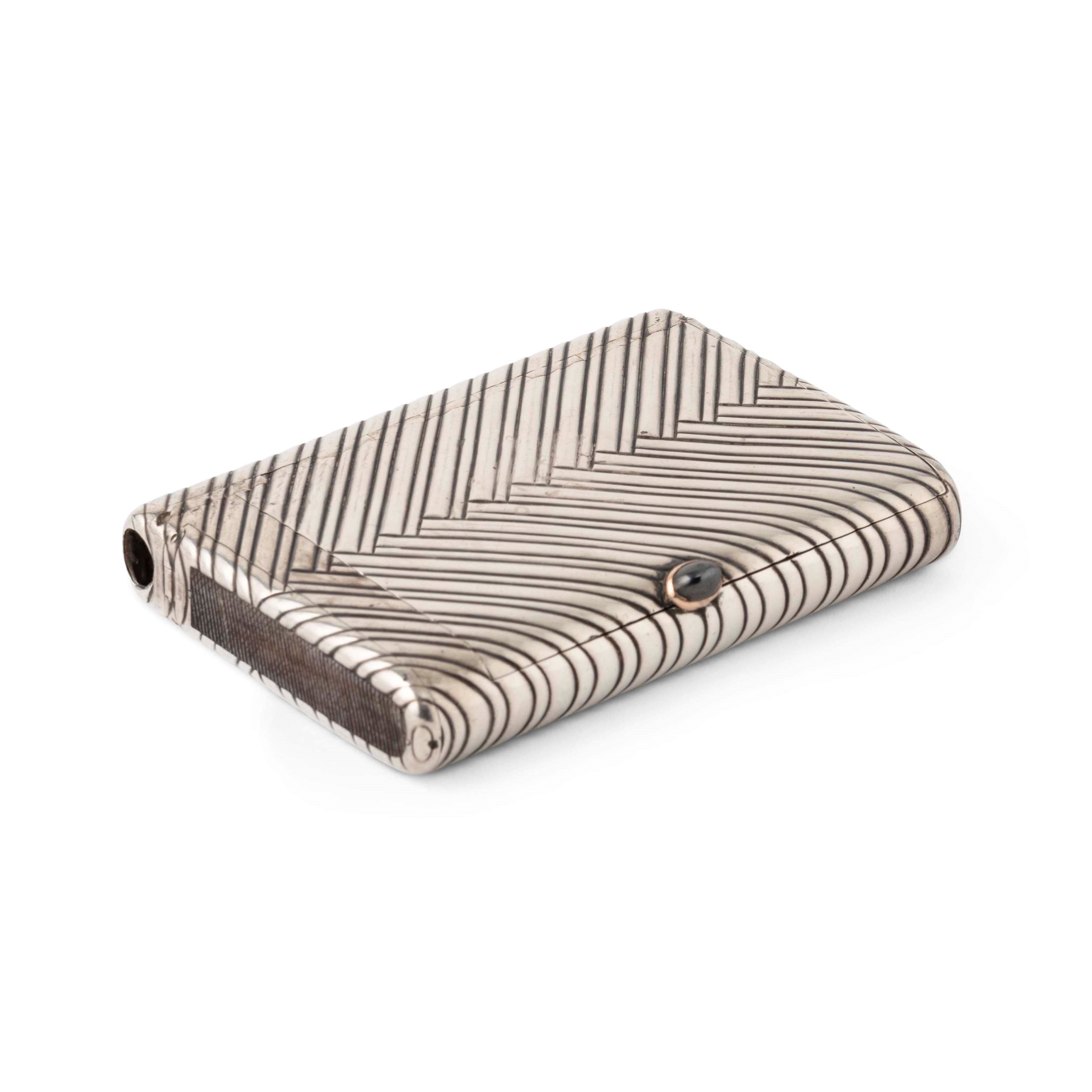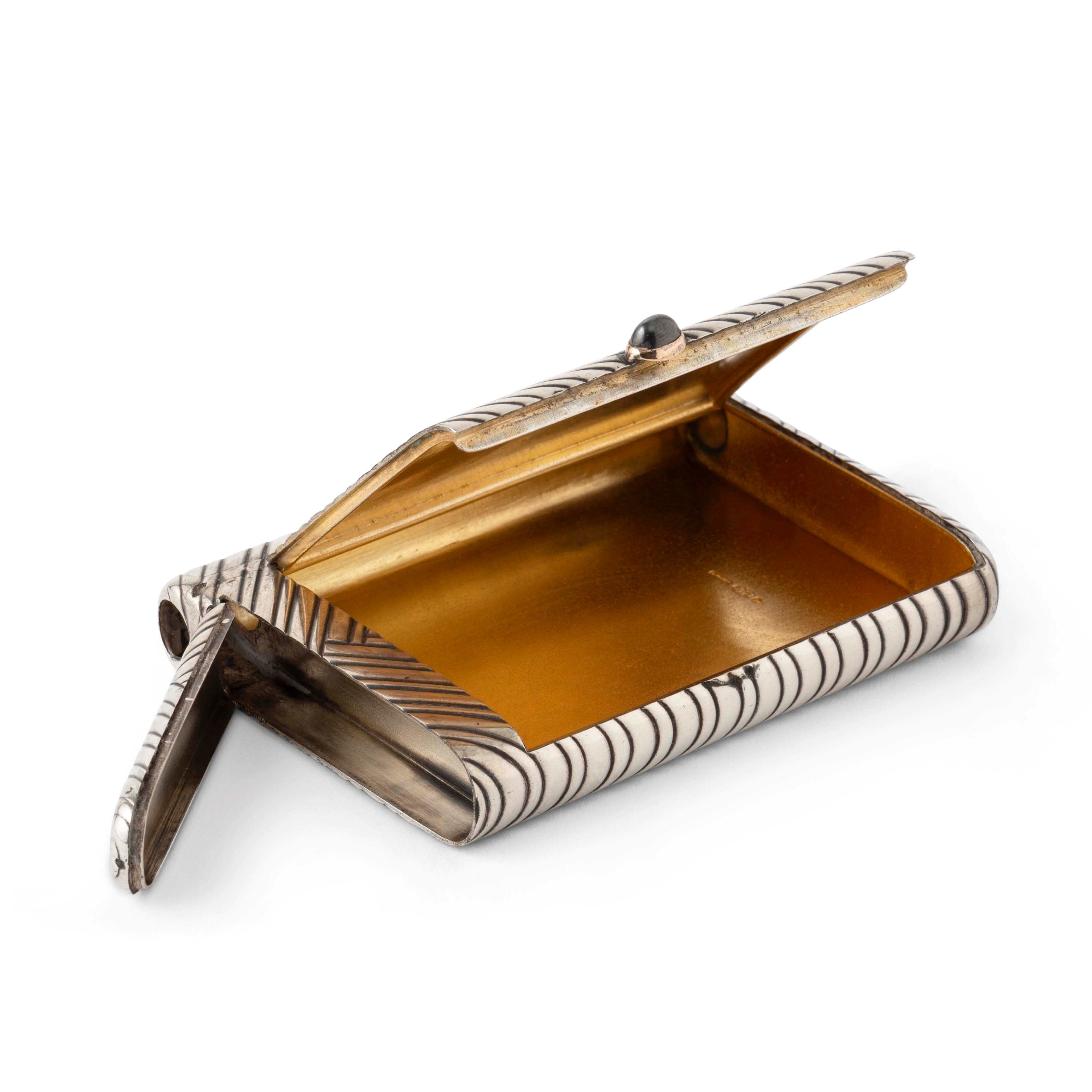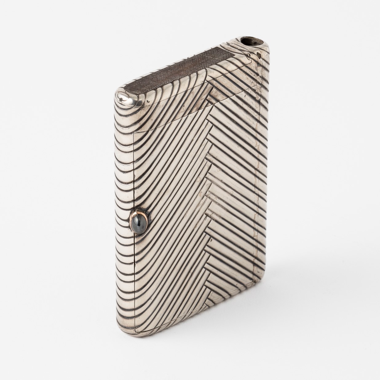 Porta sigarette e porta fiammiferi con cerniera a scomparsa. Argento fuso e cesellato [..]