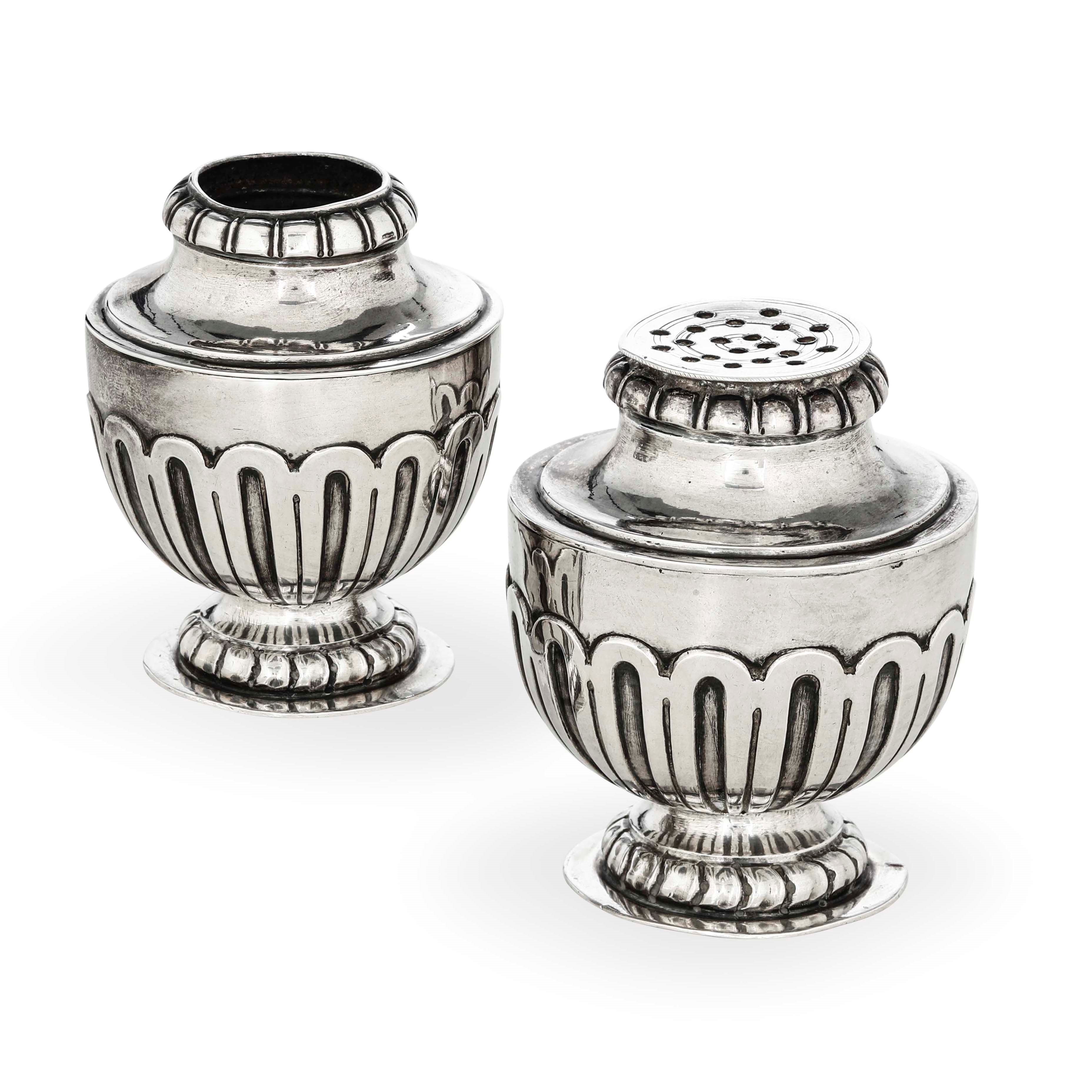 Portainchiostro e spargisabbia in argento. Genova XVIII secolo. Marchio della “T [..]