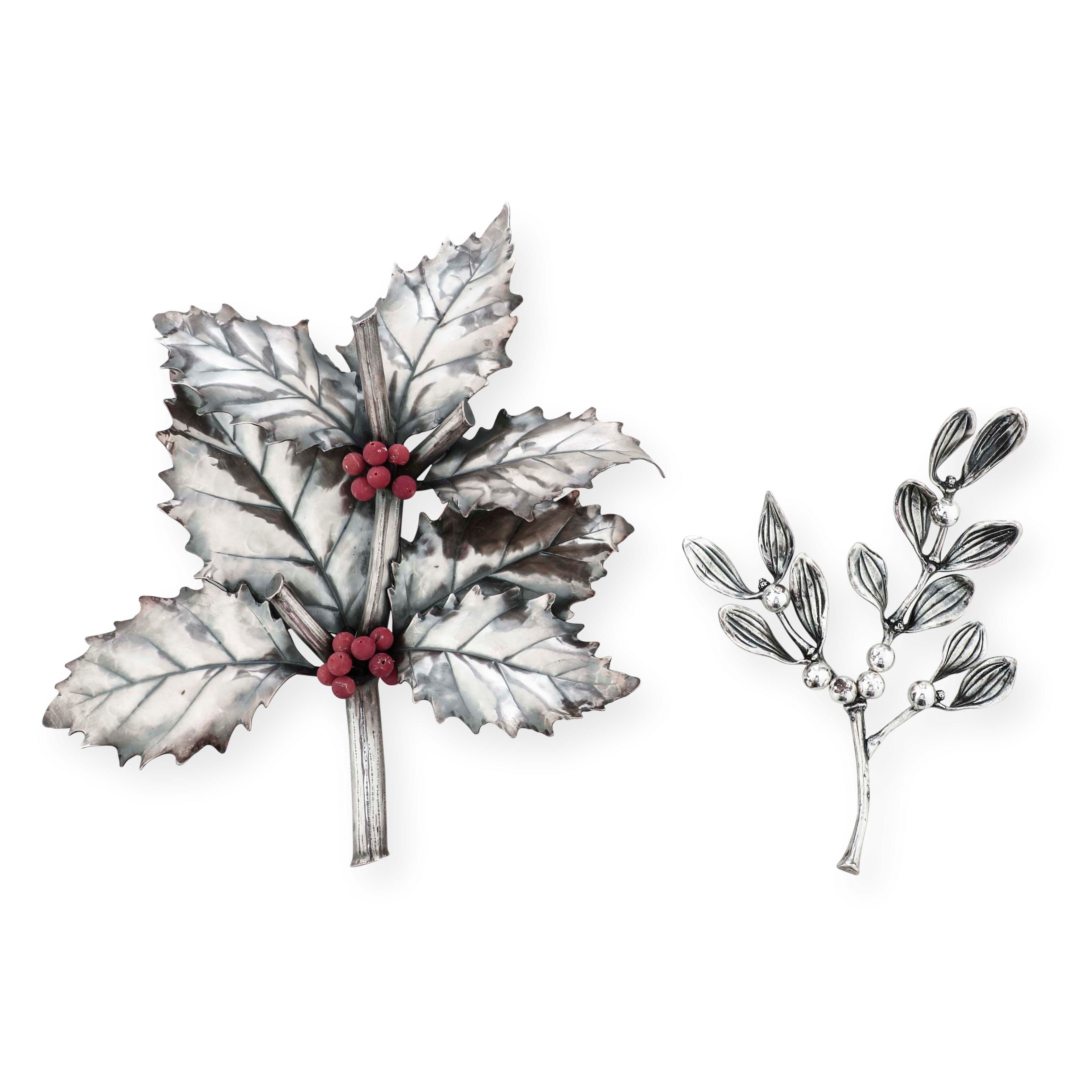 Ramo di pungitopo. Argento 925 e corallo. Argenteria milanese del XX secolo. Maison [..]