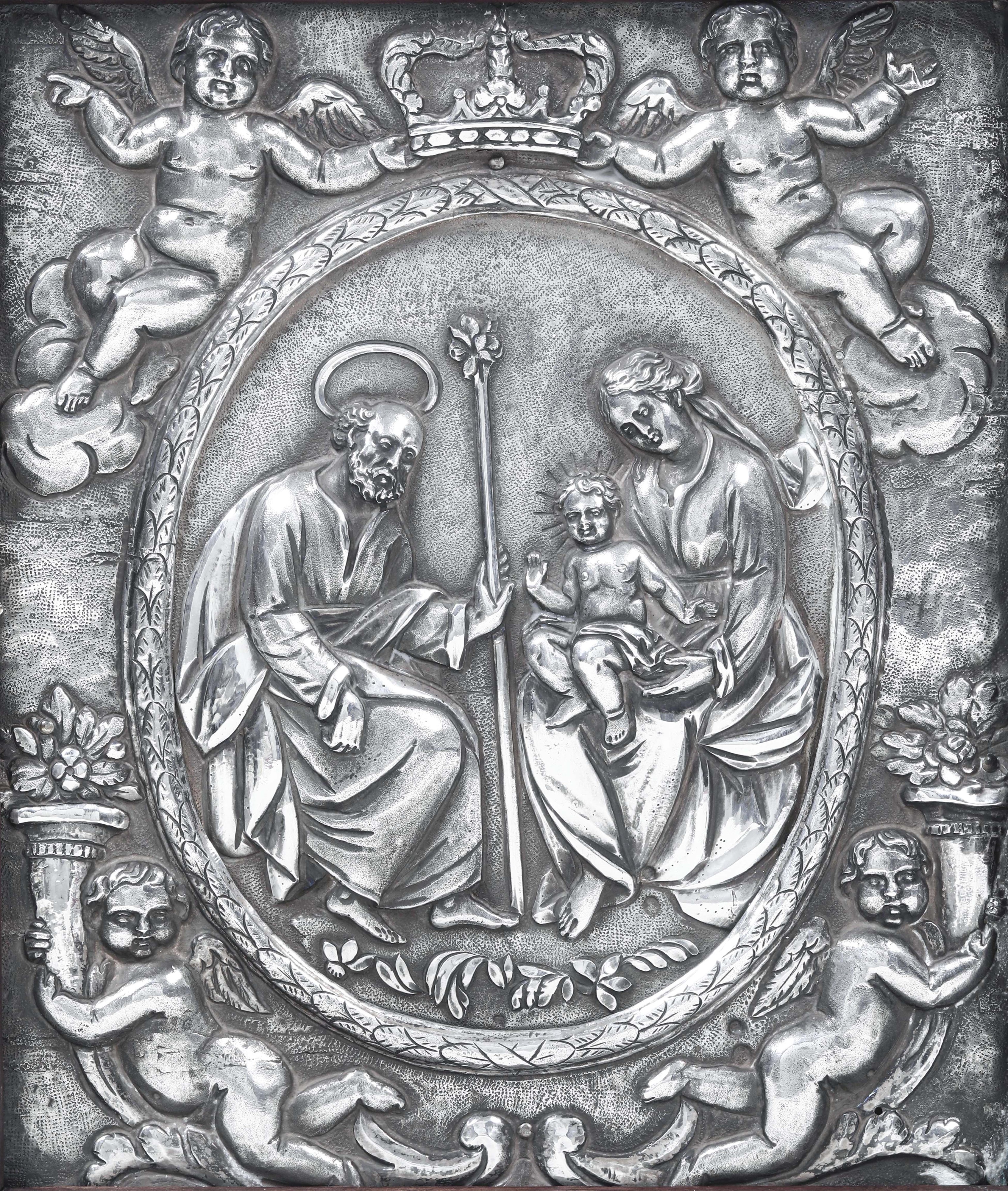 Sacra Famiglia. Placca in argento sbalzato e cesellato. Genova XIX secolo, marchi [..]