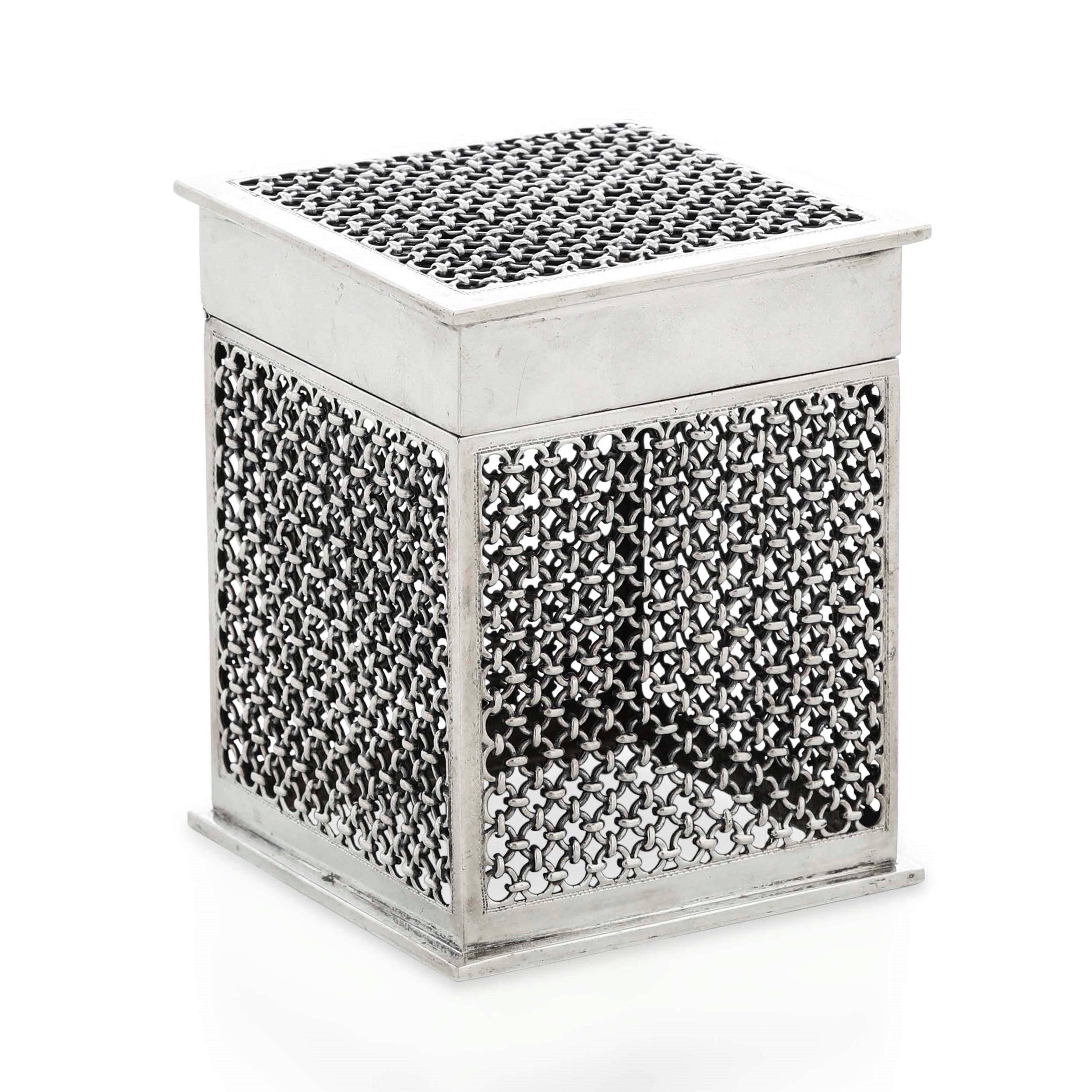 Scatola per carte da gioco. Argento lavorato a maglia traforata. Argenteria fiorentina [..]