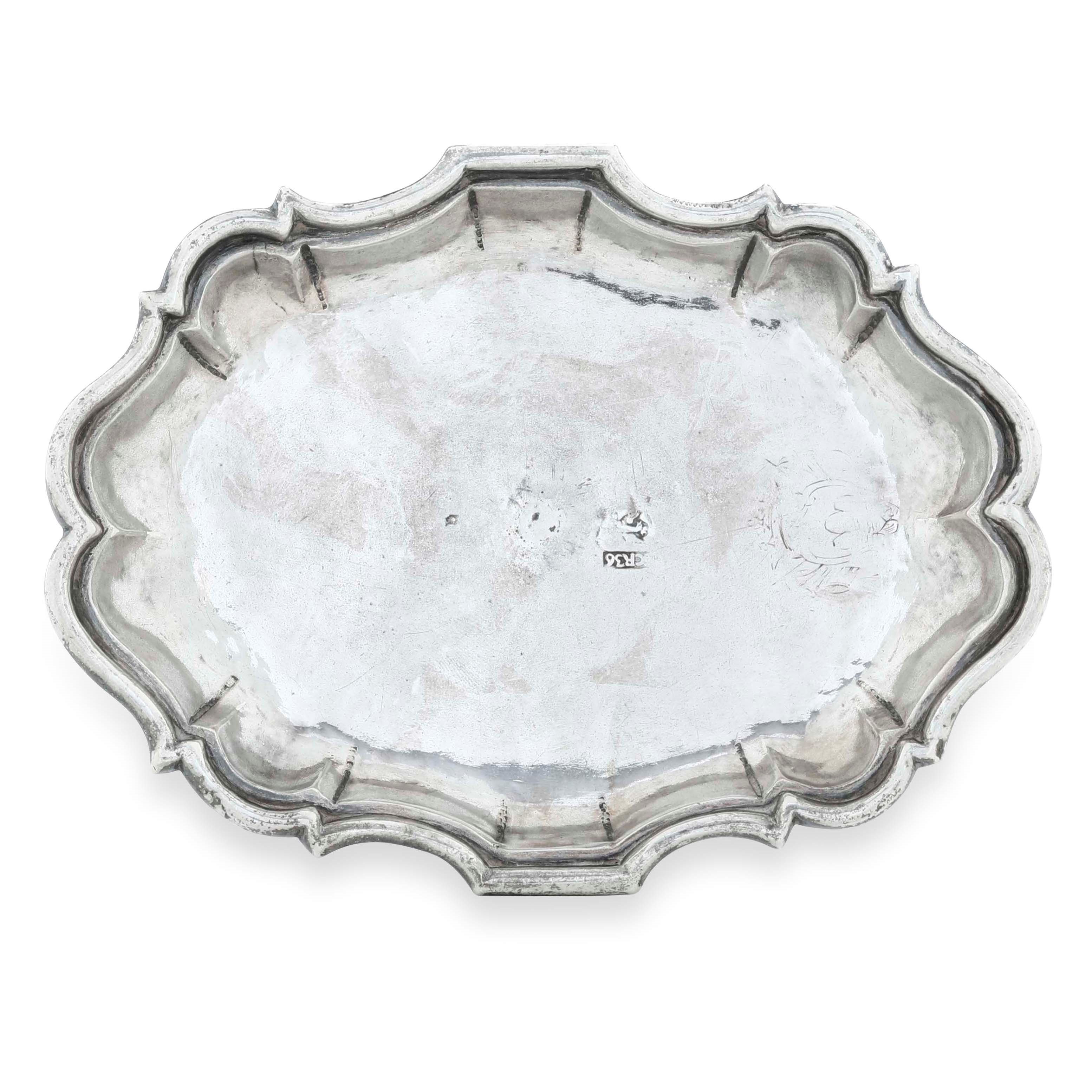 Vassoio. Argento fuso e sbalzato. Palermo 1736, marchio del console Hieronimo Cr [..]