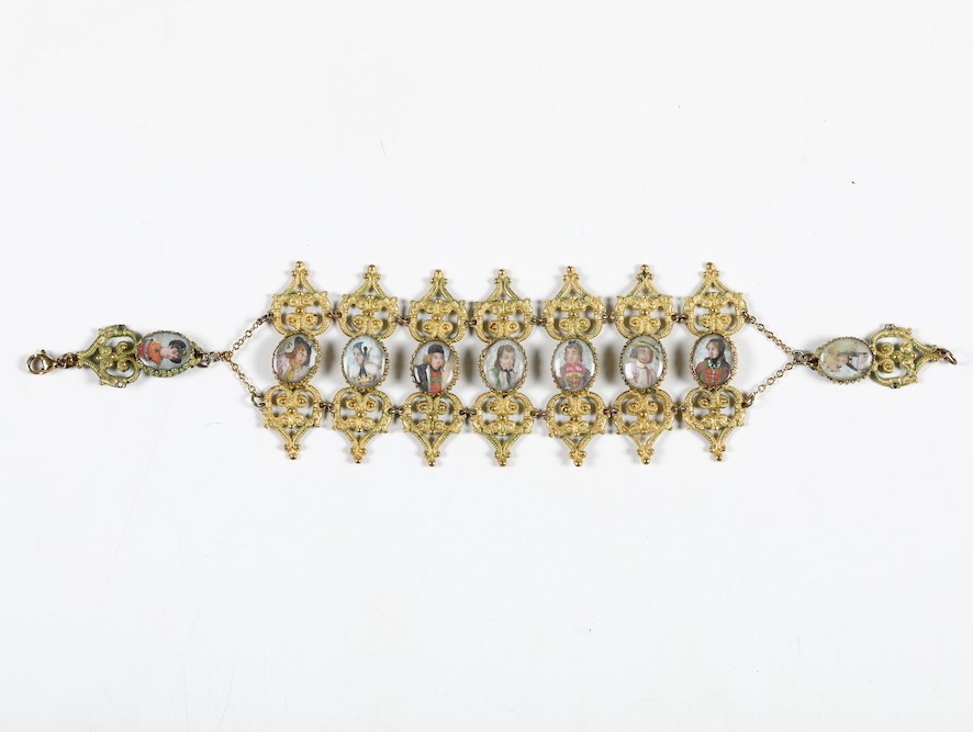 Braccialetto. Metallo fuso, traforato, cesellato, dorato e smalti dipinti. Svizzera [..]