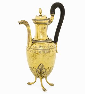 Caffettiera. Argento fuso, sbalzato, cesellato e dorato. Francia XVIII-XIX secolo. [..]