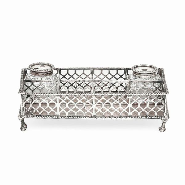 Calamaio. Argento fuso, cesellato, traforato e vetro. Londra 1844. Argentiere EA [..]