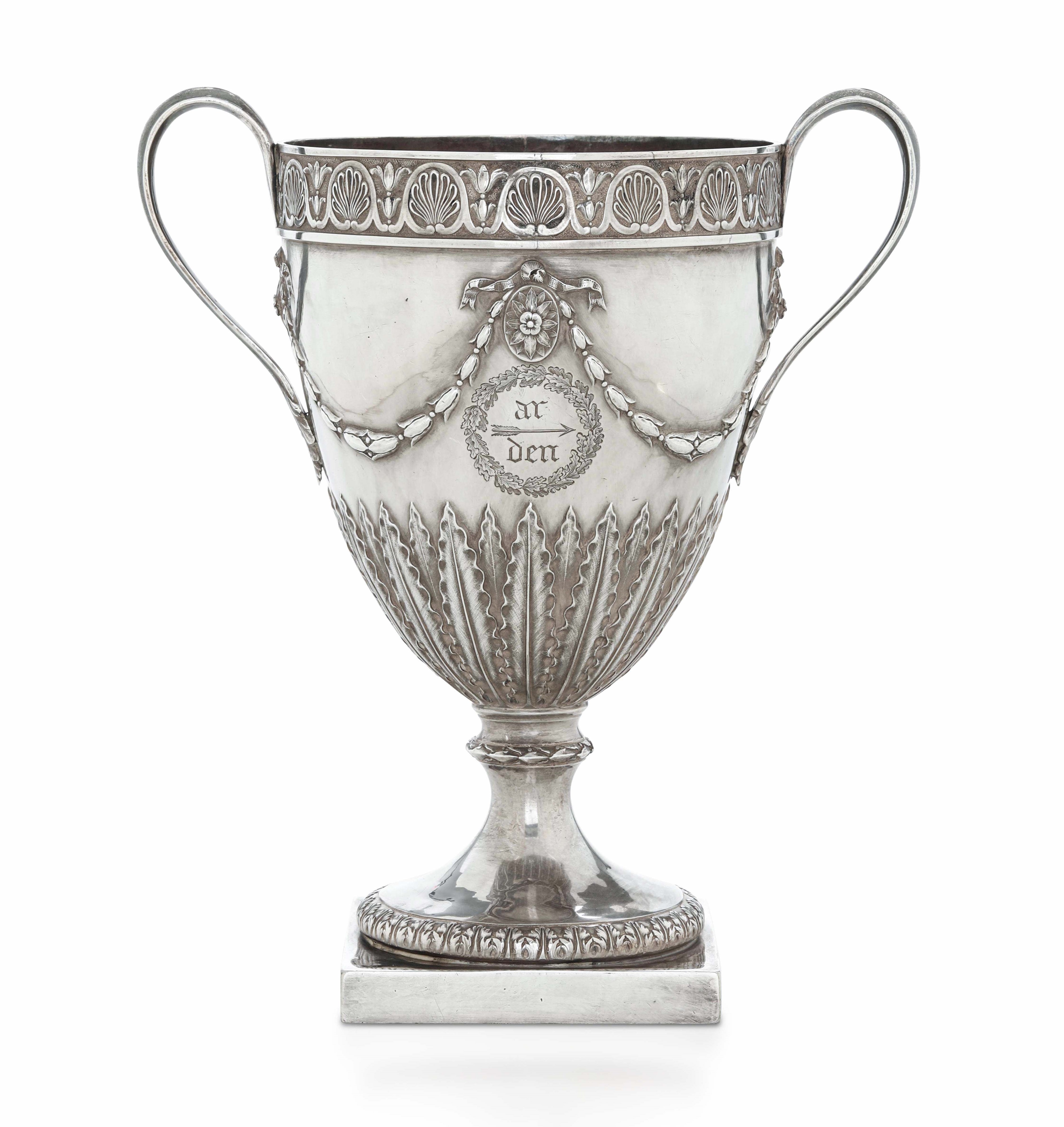 Coppa biansata in argento fuso, sbalzato e cesellato. Bollo della città di Londra [..]