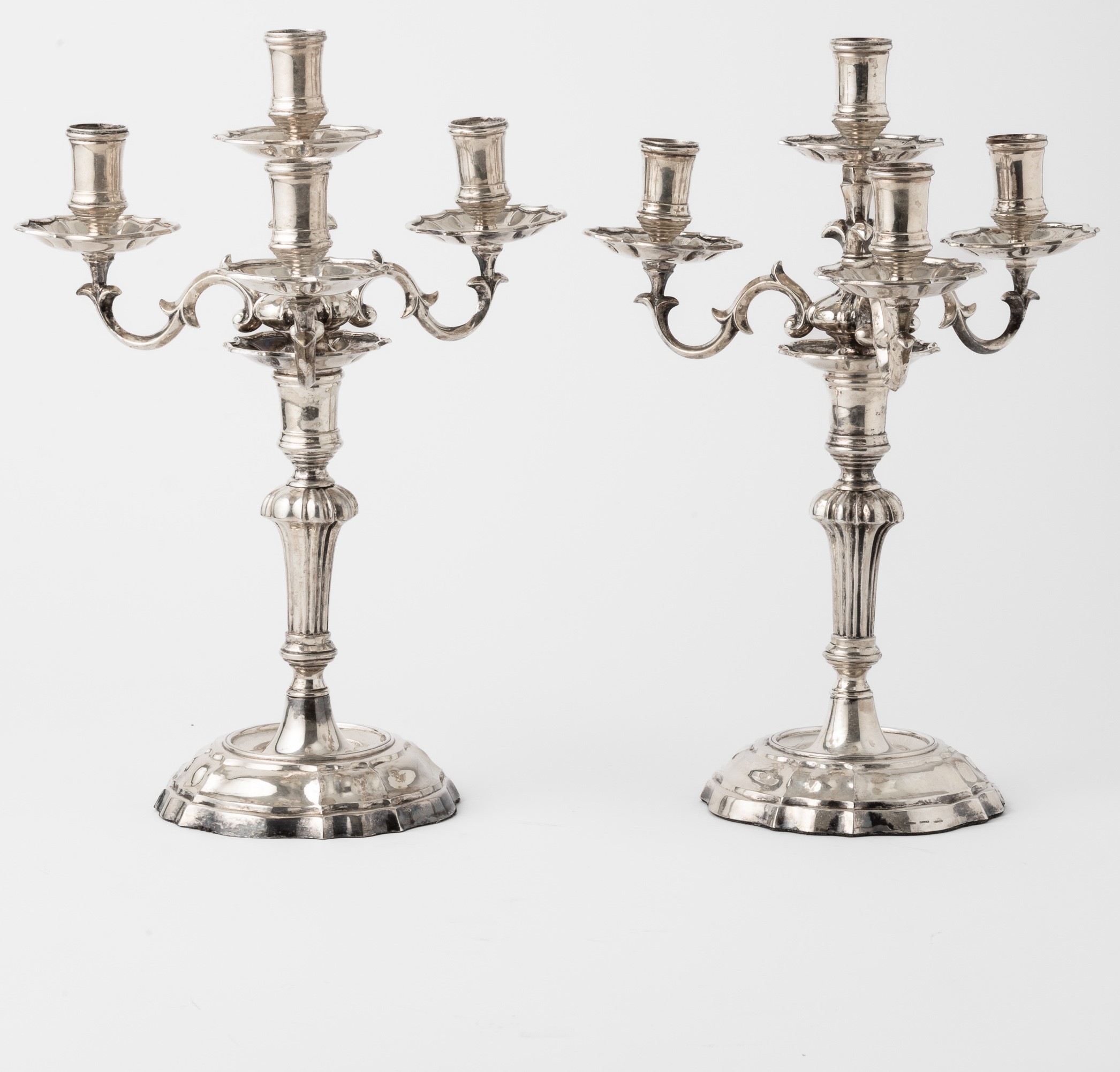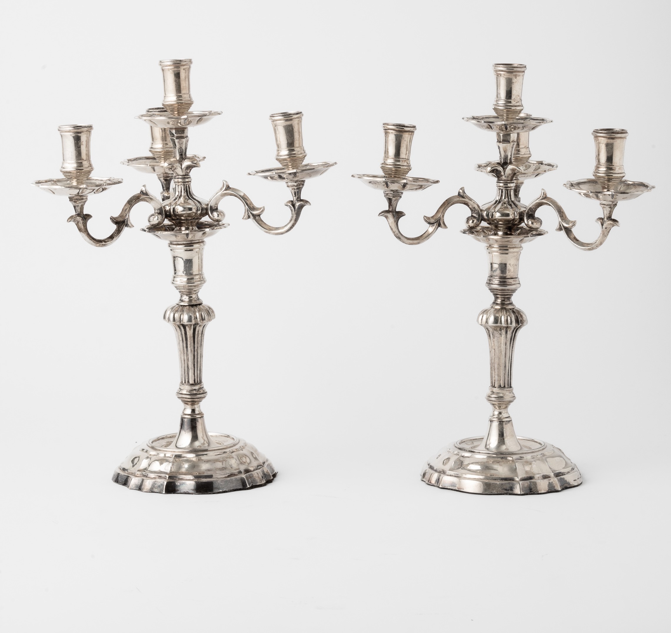 Coppia di candelabri a cinque fiamme. Argenteria milanese del XX secolo per Maison [..]