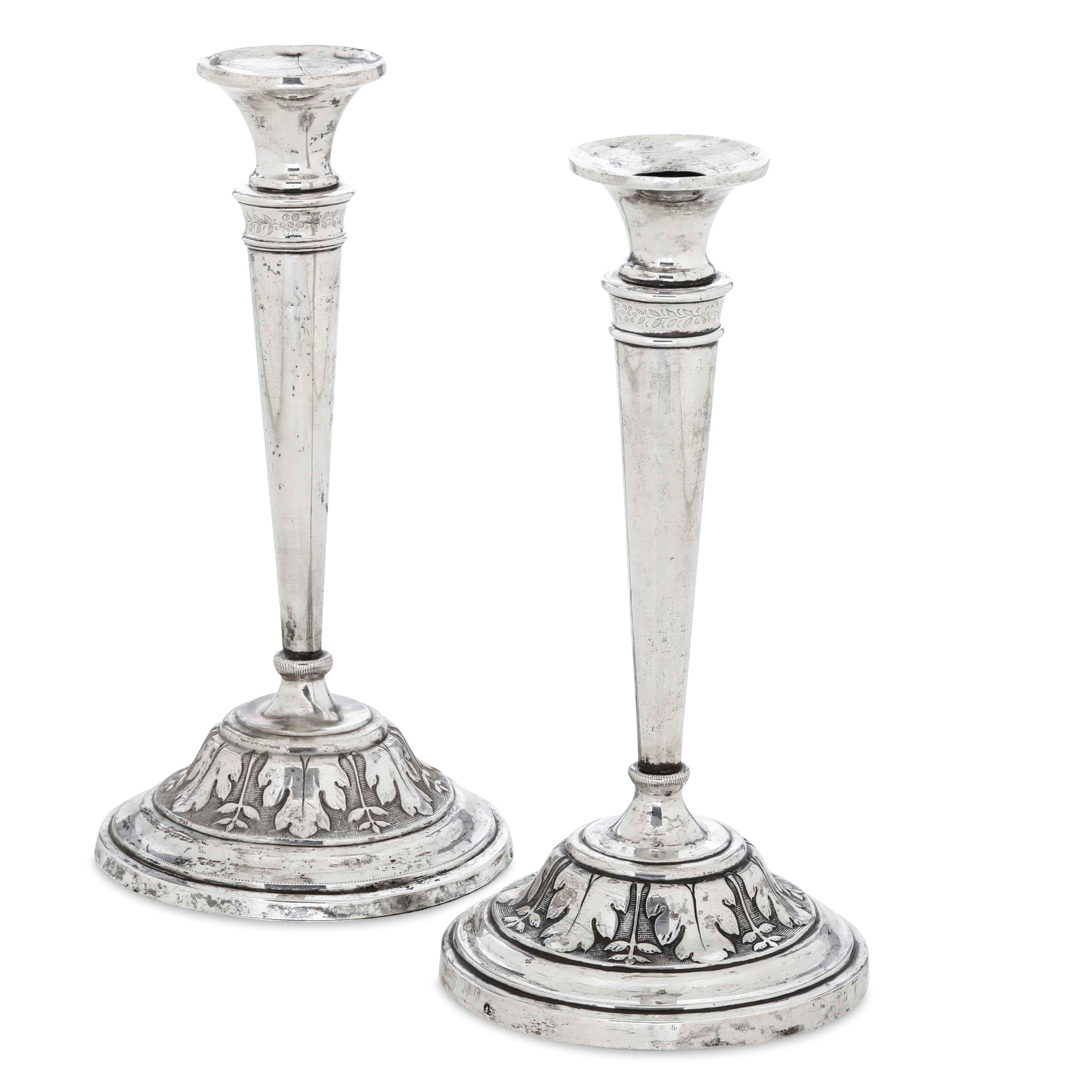 Coppia di candelieri. Argento fuso, sbalzato e cesellato. Siena XIX secolo. Marchio [..]