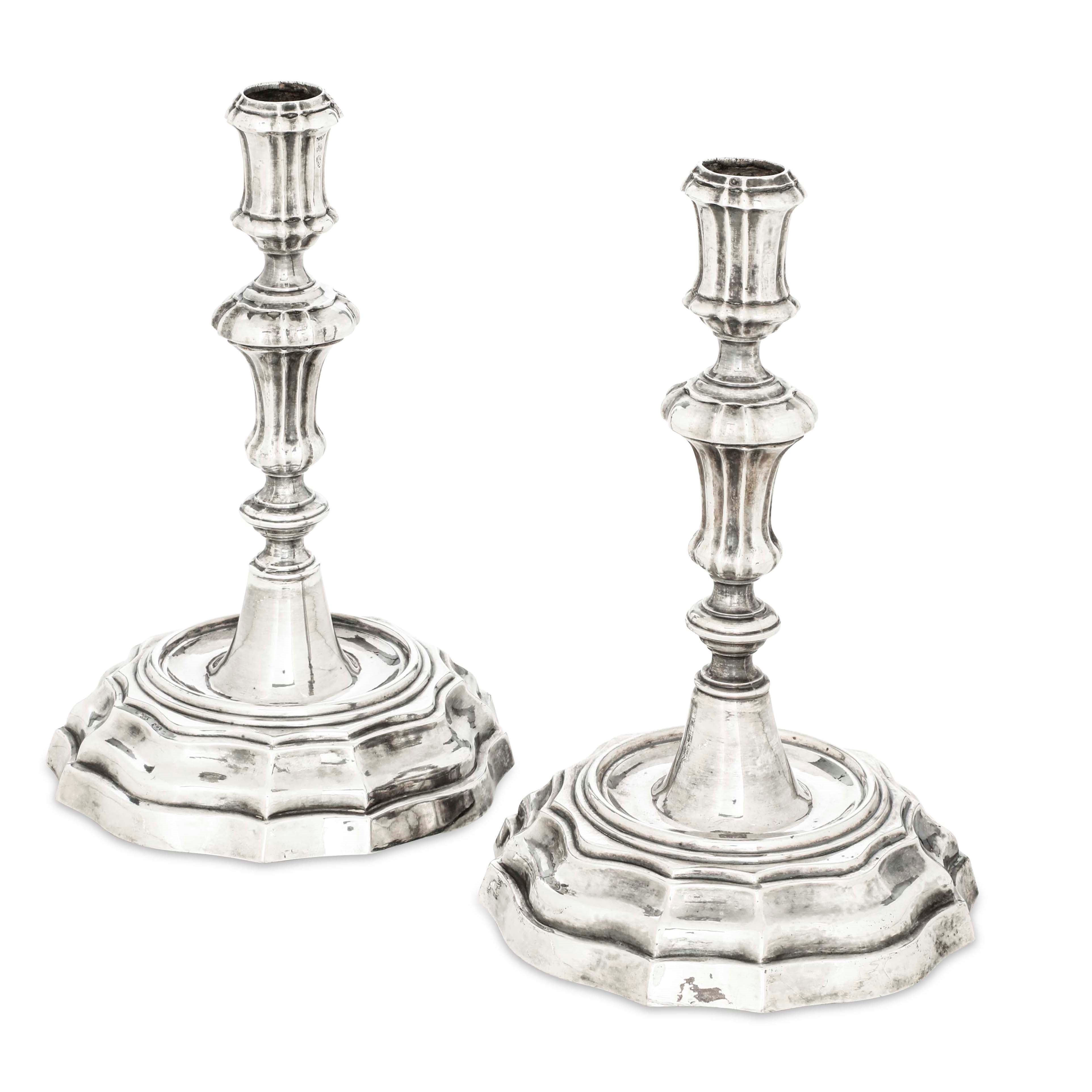 Coppia di candelieri. Argento fuso, sbalzato e cesellato. Ferrara 1760/1770 circa. [..]