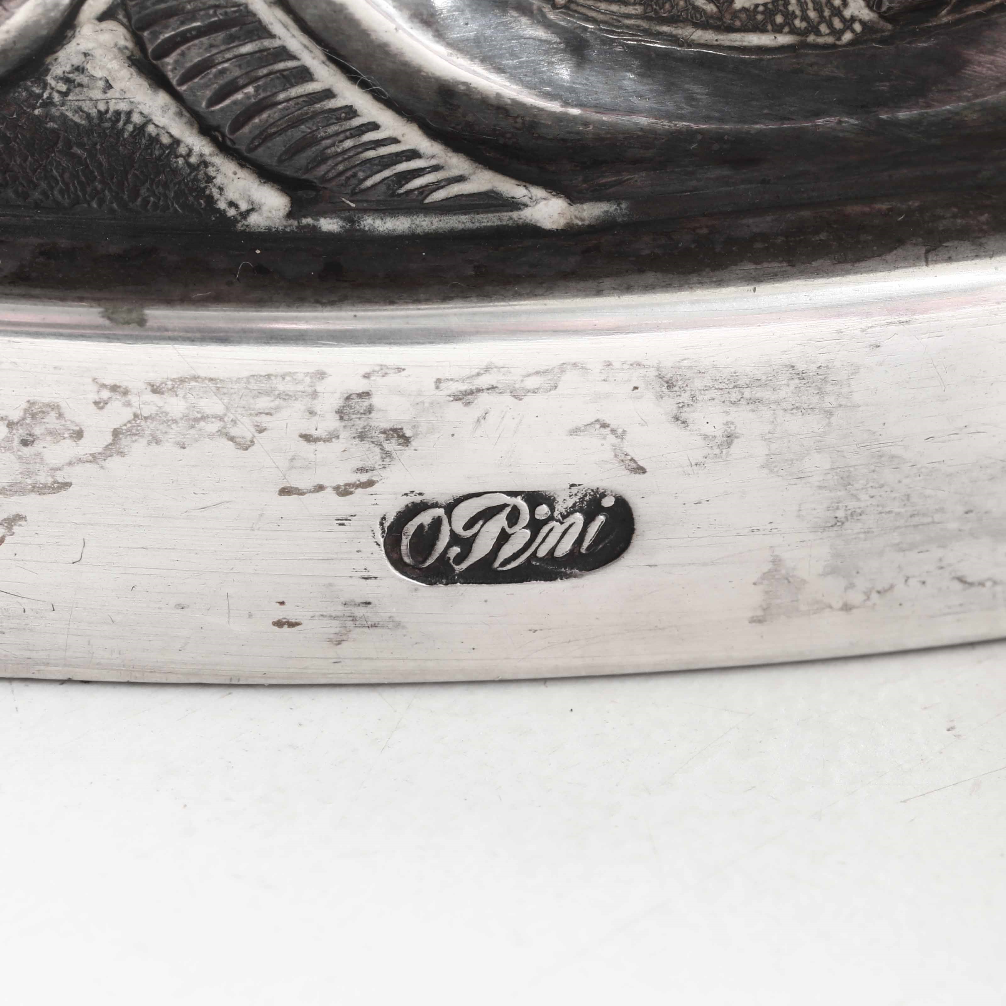 Coppia di candelieri in argento fuso, sbalzato e cesellato, argentiere O. Pini, [..]
