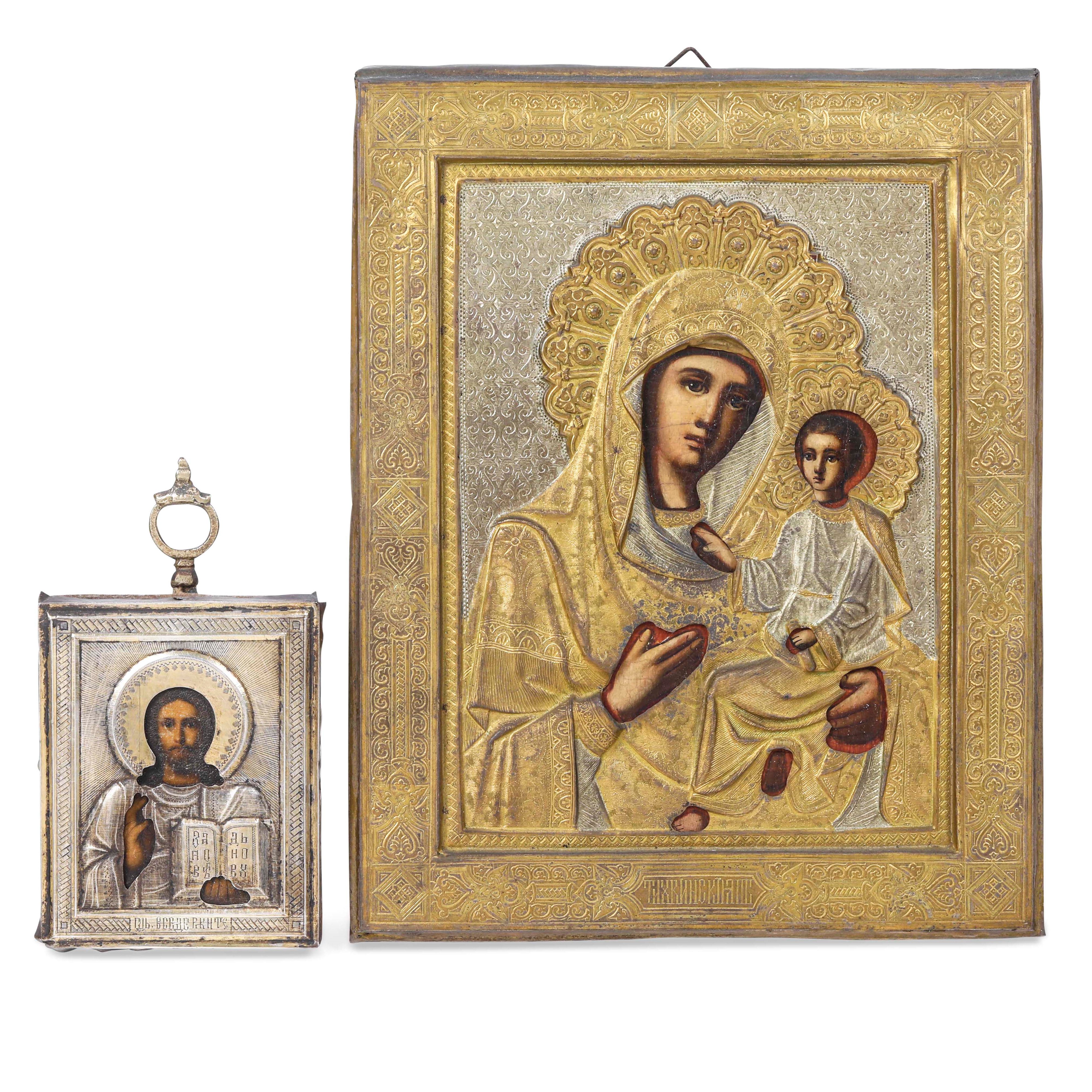 Due icone ad olio su tavola. Scuola russa del XIX secolo