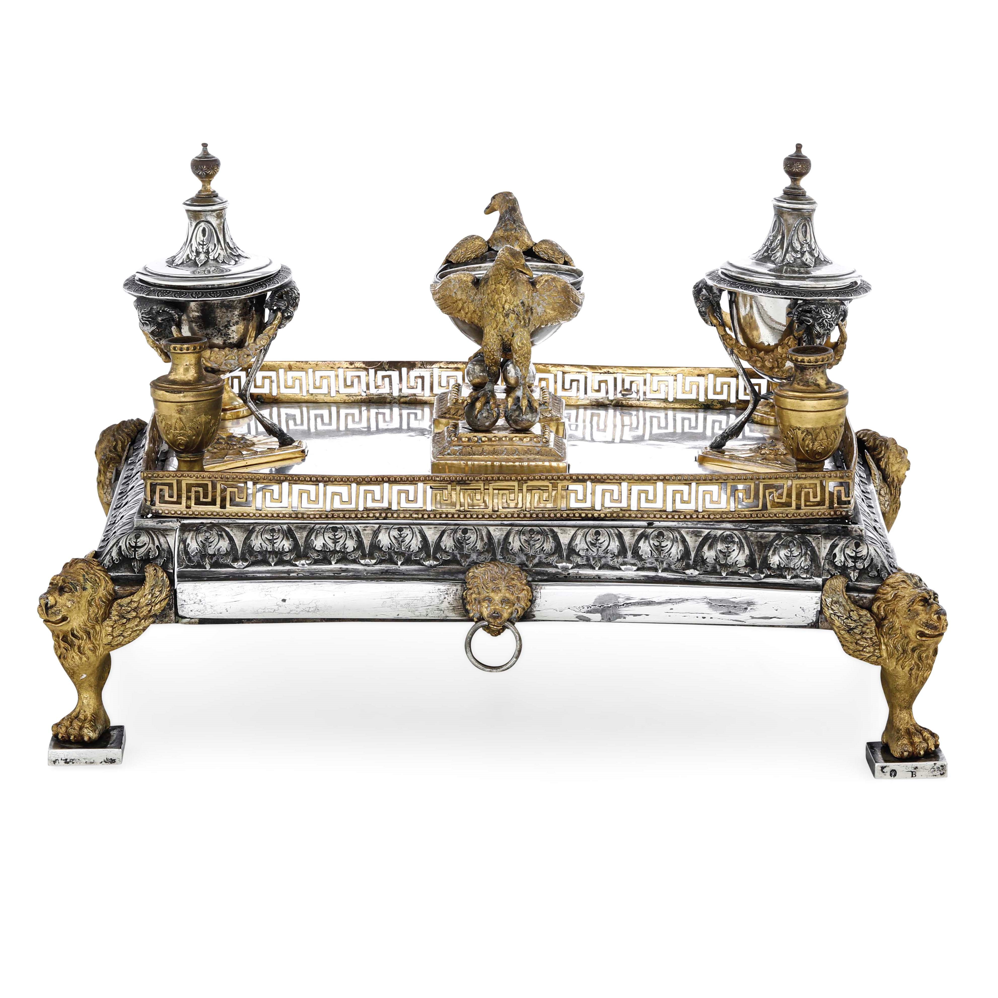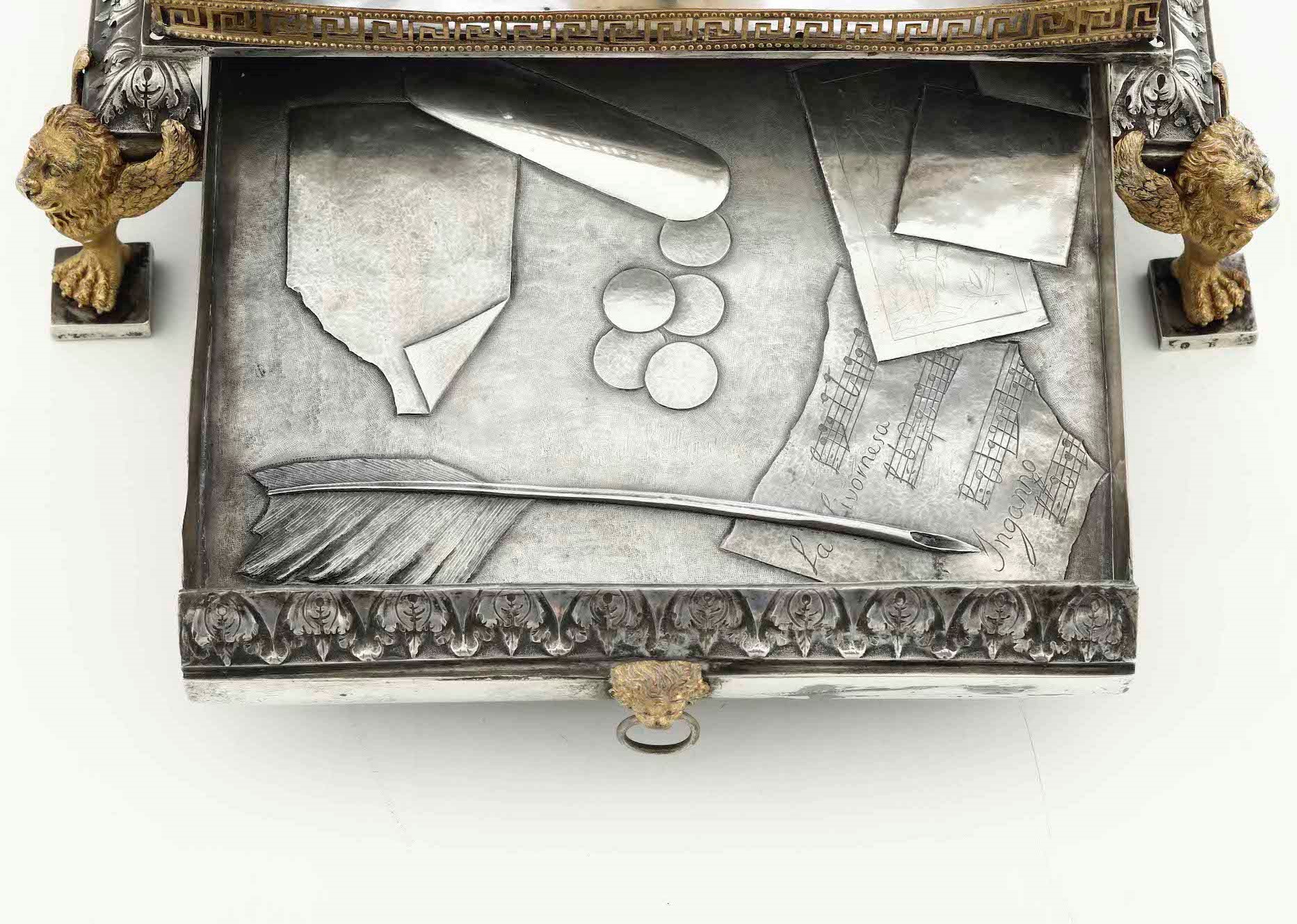 Importante calamaio neoclassico. Argento fuso, sbalzato, traforato, cesellato e [..]