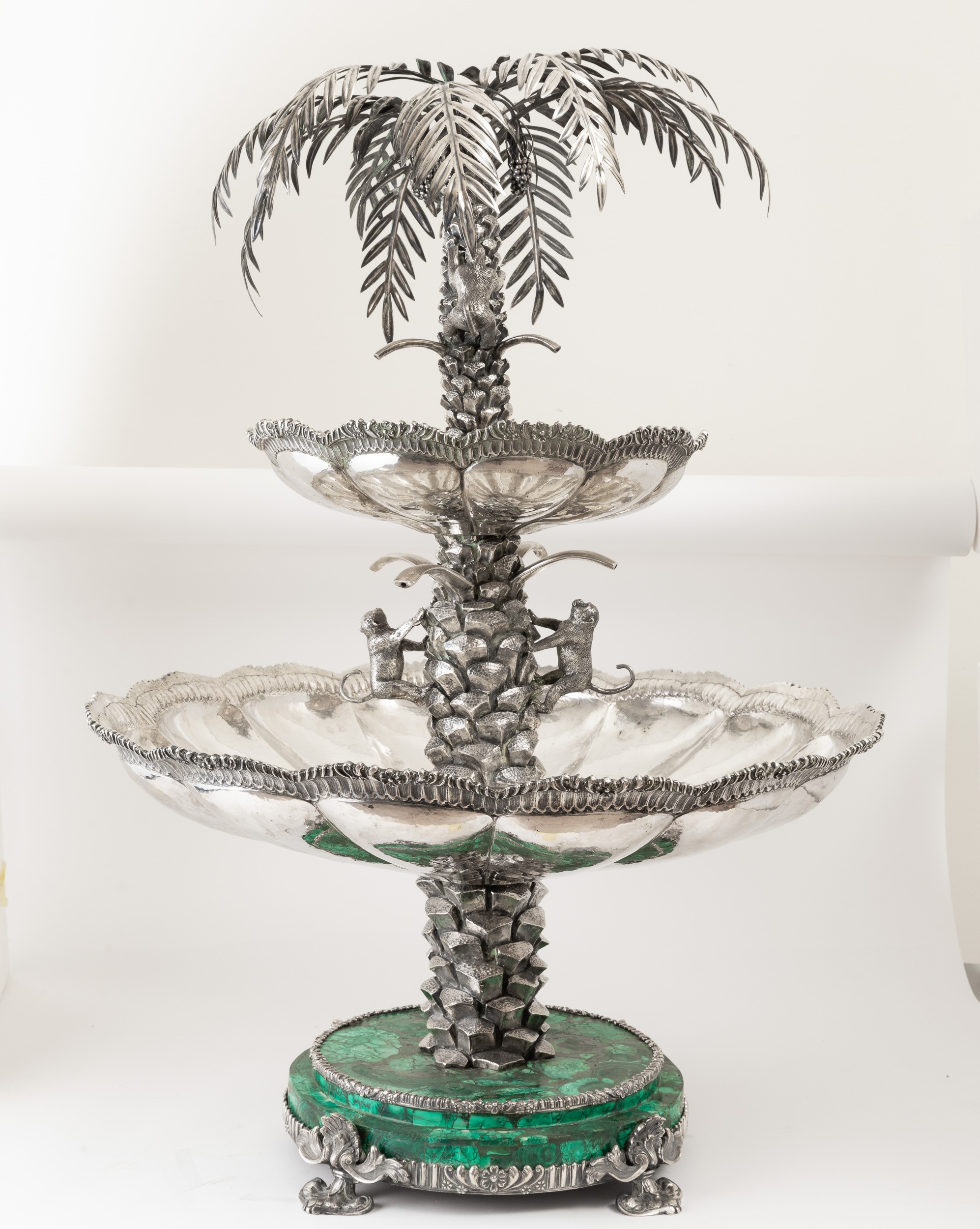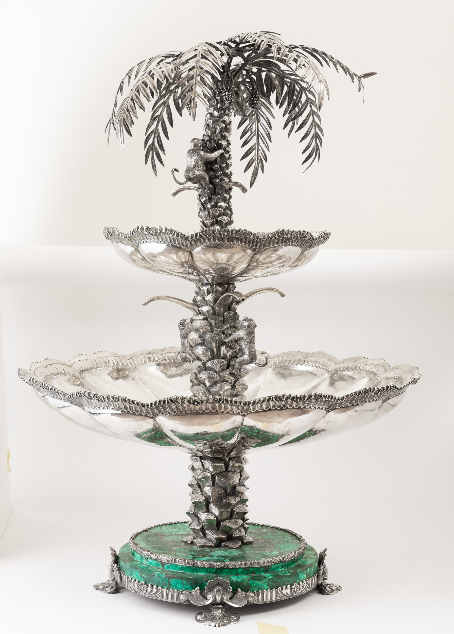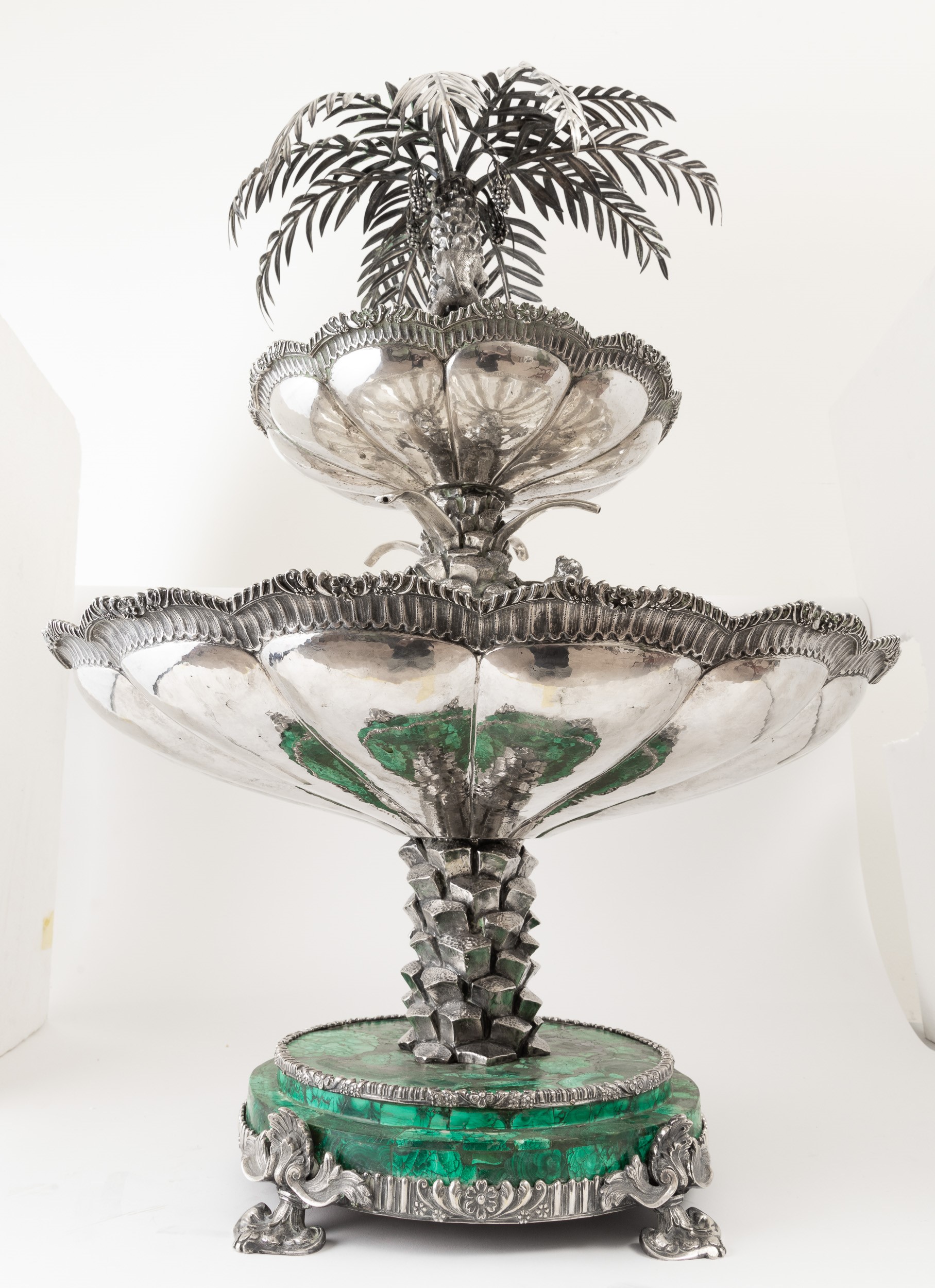 Monumentale fontana centrotavola. Argento fuso, sbalzato, cesellato e base circolare [..]