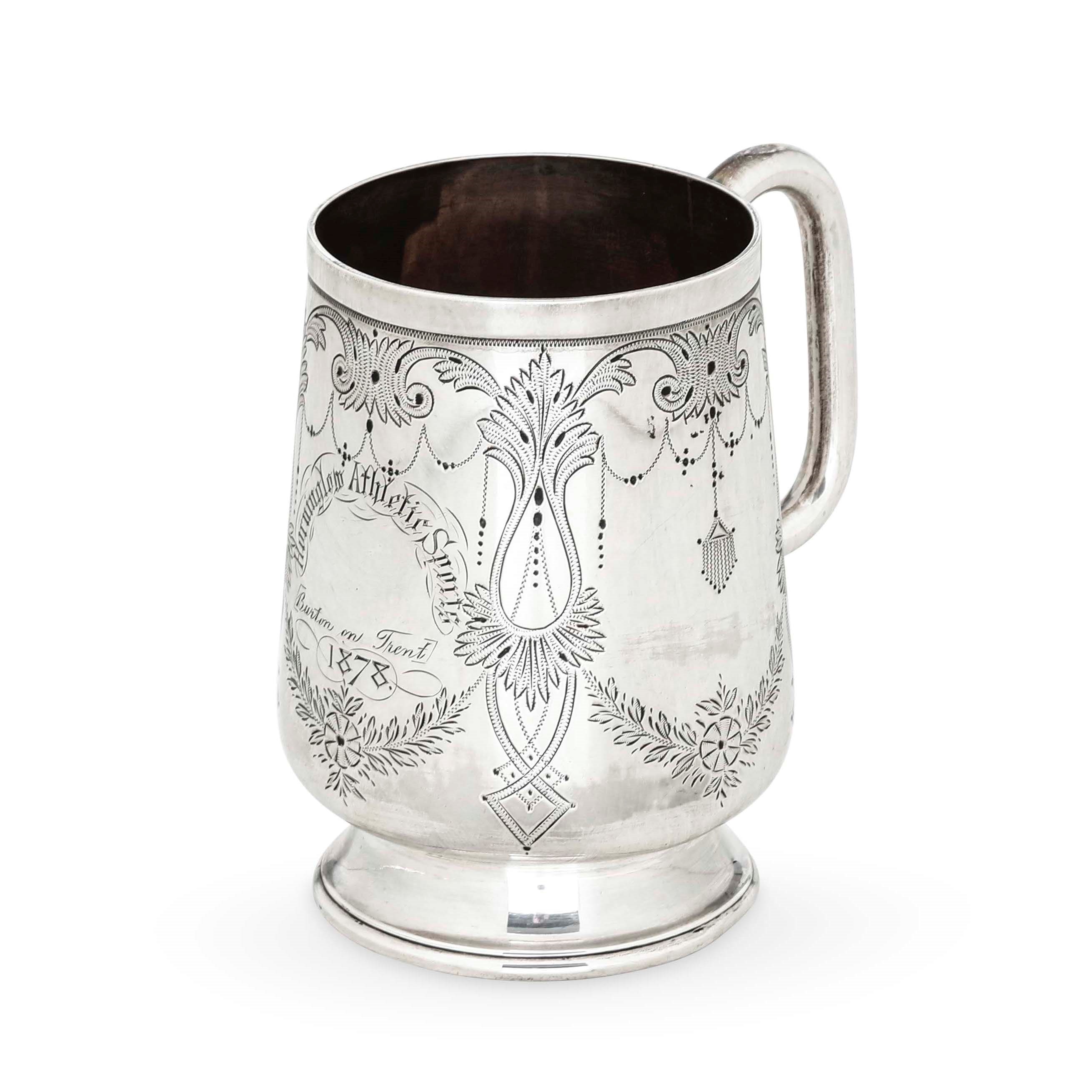 Mug. Argento fuso, sbalzato e cesellato. Birmingham 1877, argentiere A.H. Tongue
