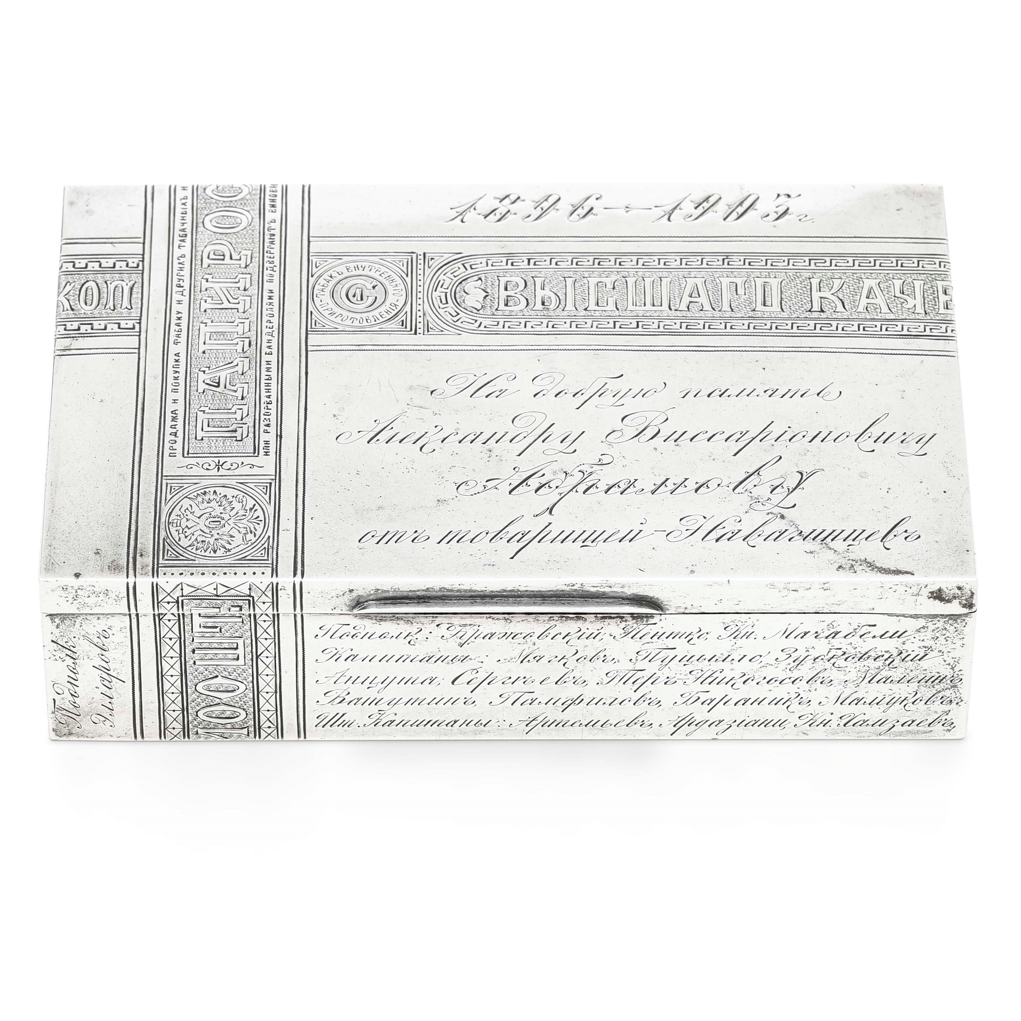 Scatola portasigarette. Argento fuso, sbalzato e cesellato. San Pietroburgo, marchi [..]