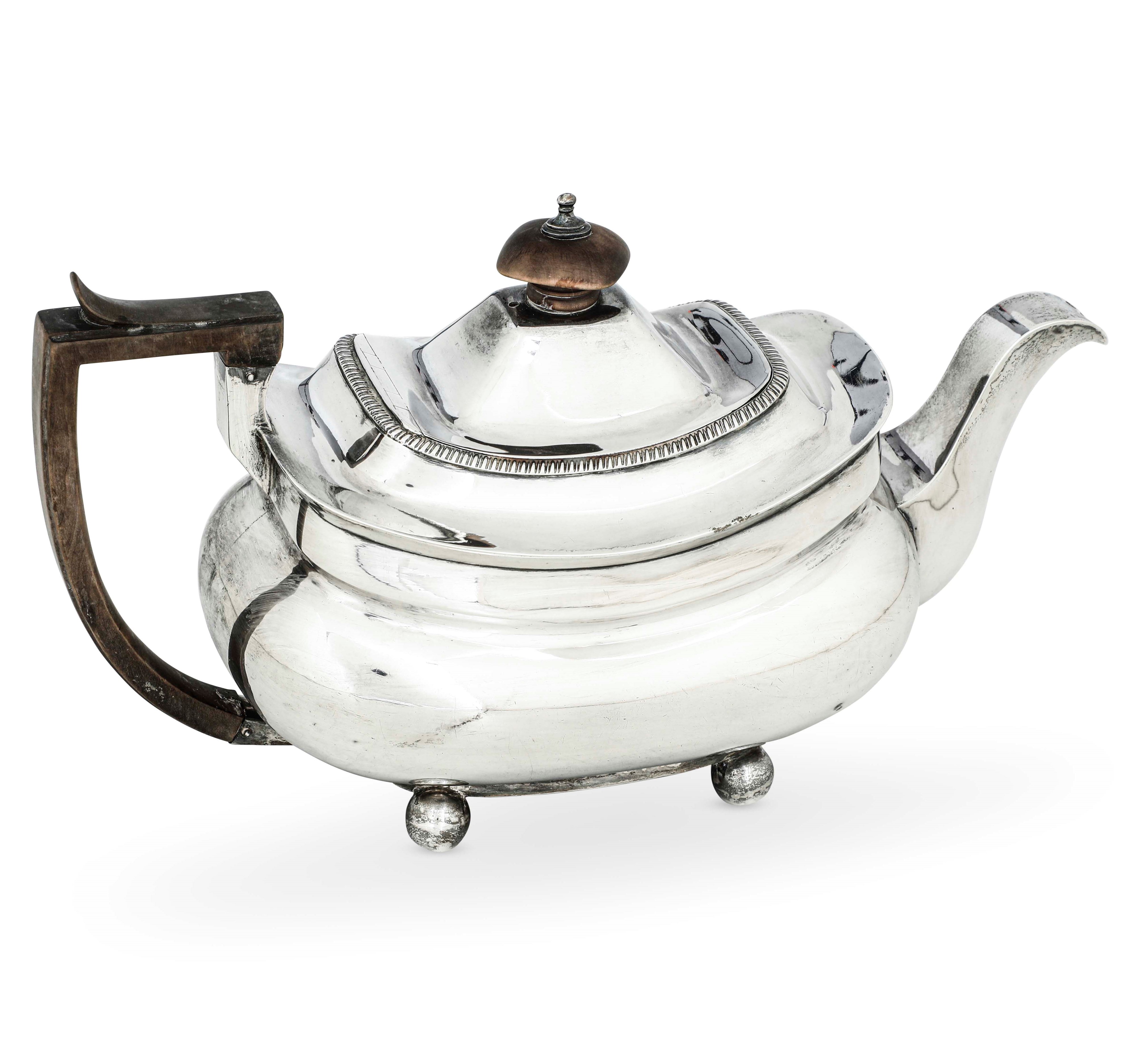 Teiera. Argento fuso e sbalzato. Londra 1807, argentiere John Tweedie