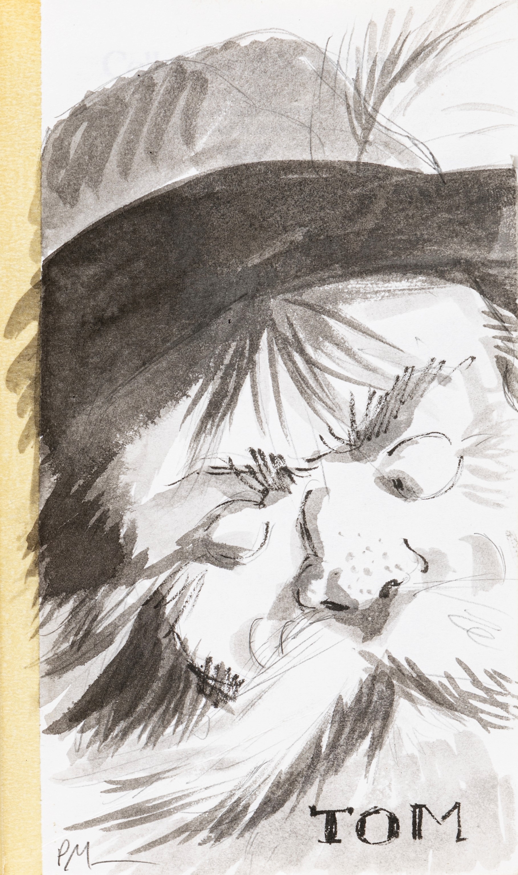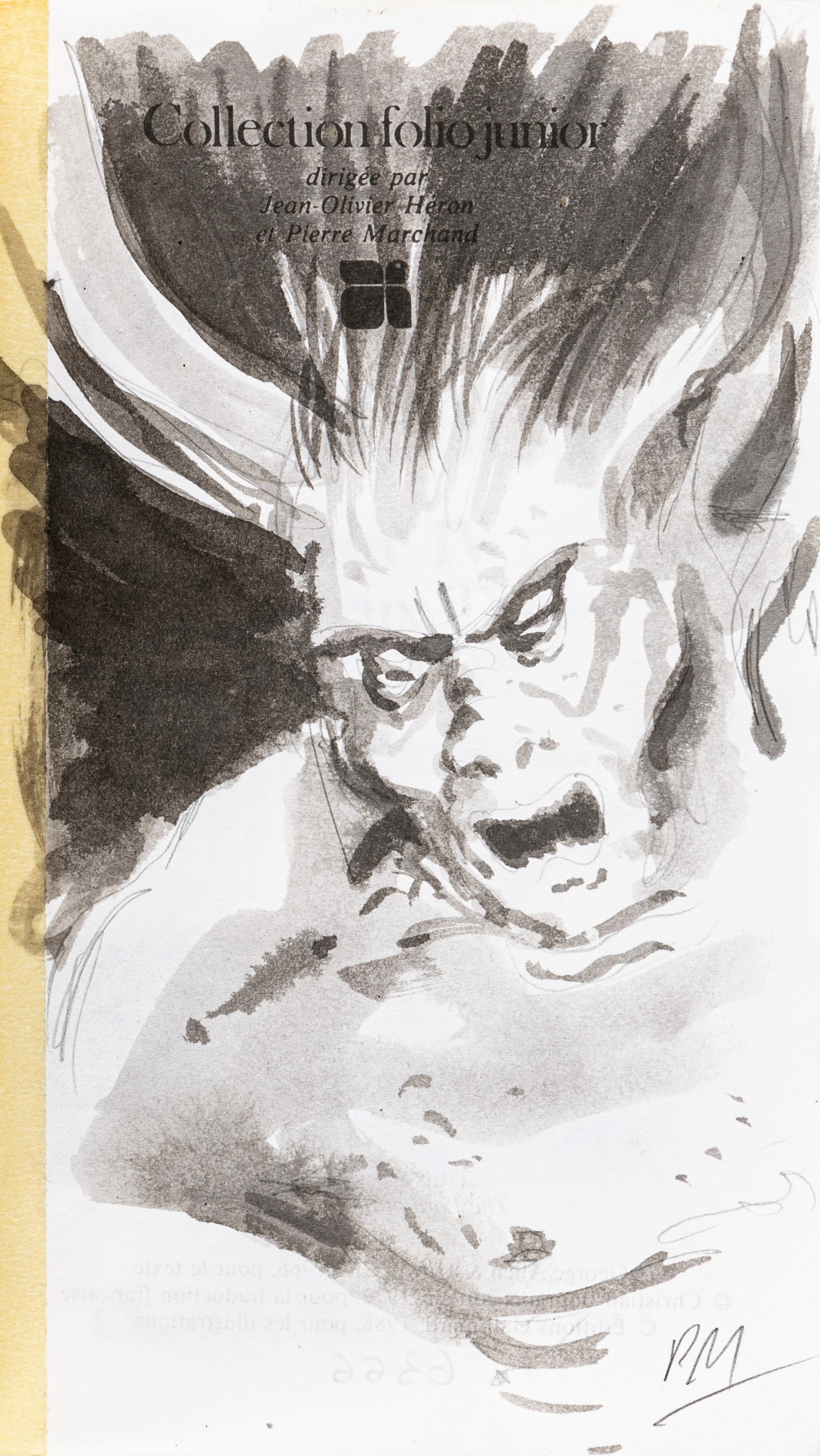 matita, china e acquerello su carta, 10 x 18 cm ciascuno 1988 Lotto composto dai 6 libri de Le Seigneur des Anneaux, editi dalla casa editrice francese Edition Gallimard nel 1988. Sul risguardo di ogni libro l'autore Philippe Munch ha realizzato un disegno: Libro I Gandalf, Libro II Gollum, Libro III Frodo, Libro IV Balrog, Libro V Smaug, Libro VI Tom Bombadil. Ciascuno firmato.
