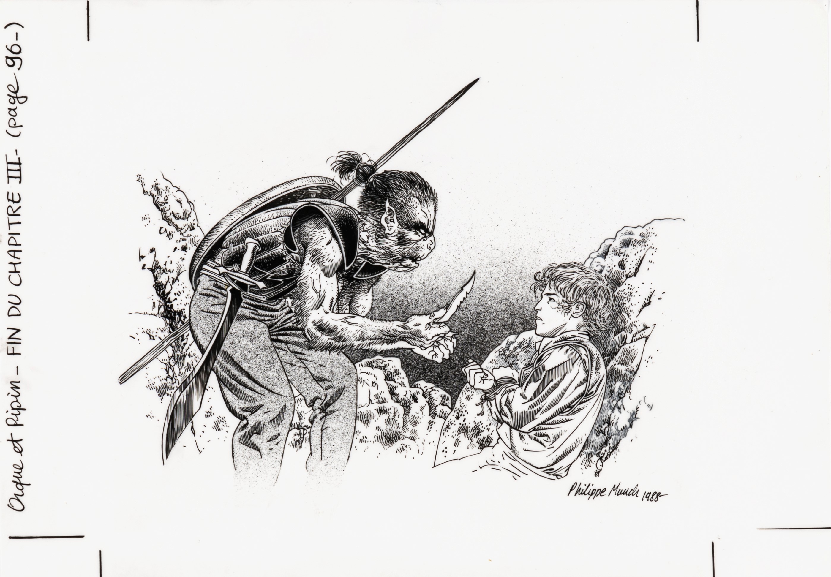 1988 Illustrazione originale realizzata da Munch per il Libro III de Le Seigneur des Anneaux, edita a pag. 72 dalla casa editrice francese Edition Gallimard nel 1988. Firmata e datata.