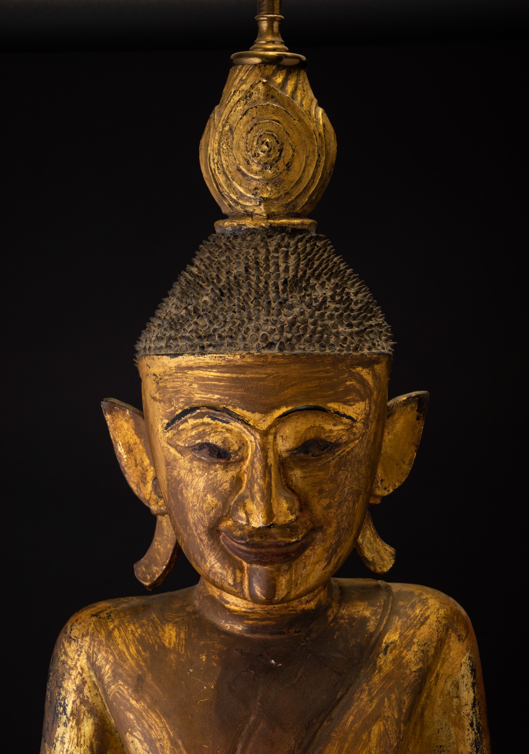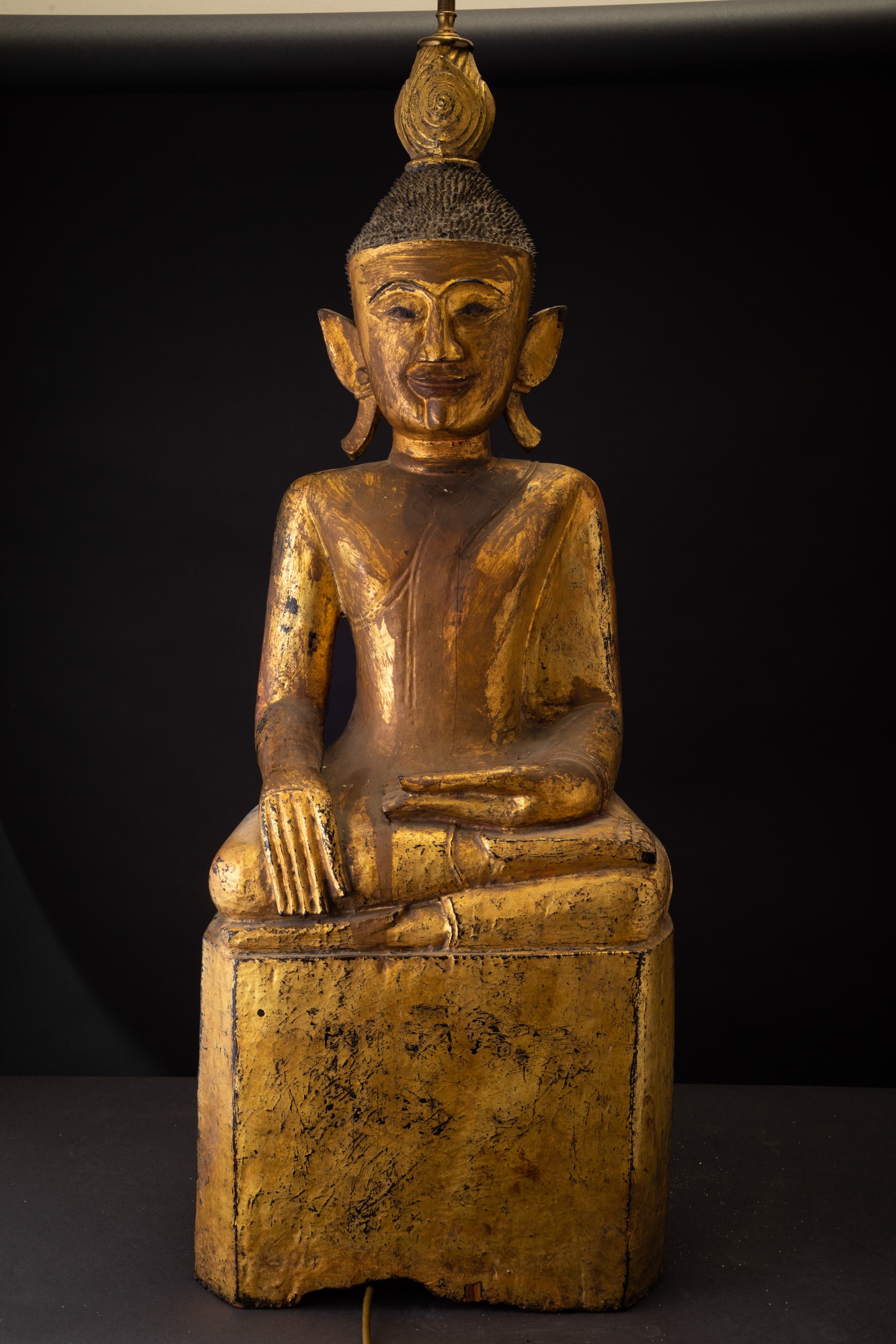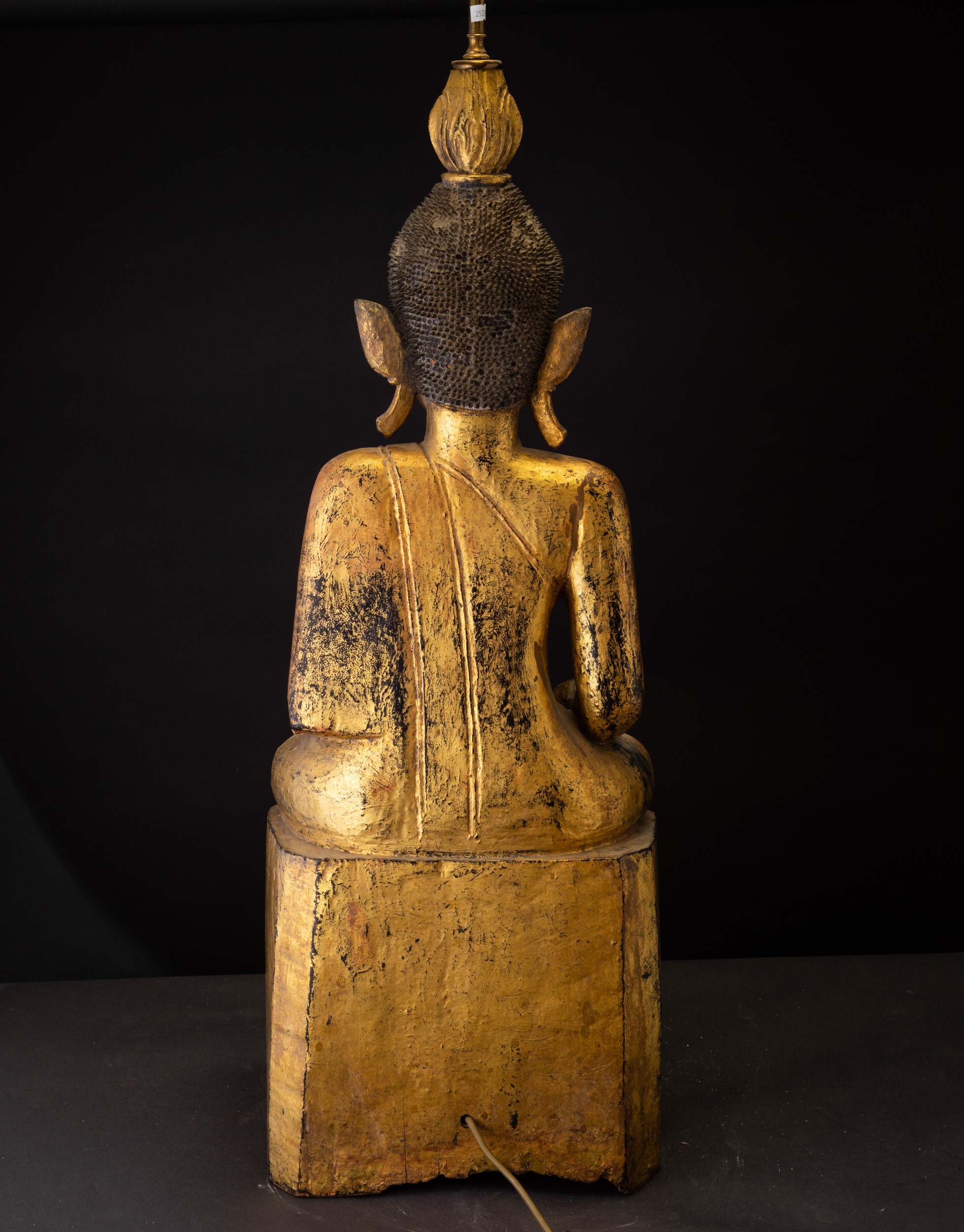 Buddha Sakyamuni in legno dorato, Indonesia, XIX secolo